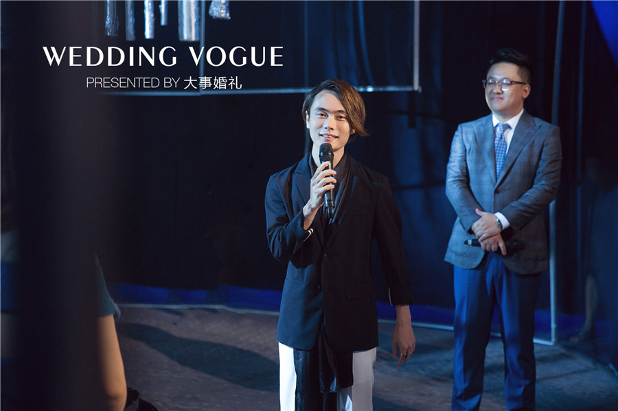 ▲主持人雪松和黄涛同台演绎诠释本场宴会设计发布