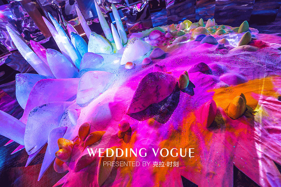 觉得这个行业很美,做婚礼很幸福,可以得到很多在其他地方得不到的东西,小丸子在发布会现场解释说,她们用涂画好的大小组合的彩色的油画色块,中间是一个像美瞳组合的亚克力造型,象征每一个想做婚礼的小白,站在围城外对这份事业总是充满好奇和憧憬,为了这些美好和缤纷,选择踏入和冲进这个行业。