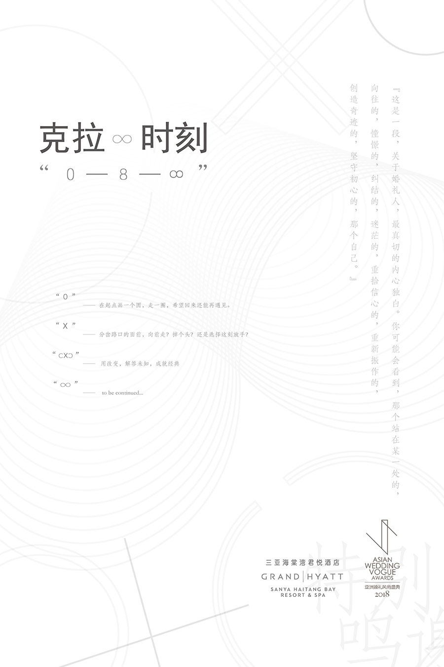“ 0”阶段,取自公司成立8周年里面的一个圆圈,0点,也是起点;在这一个阶段刚踏入婚礼行业的人,对于成为婚礼人充满憧憬、向往和期待,象征着每一个婚礼人在未入行或刚入行的状态和心境;
