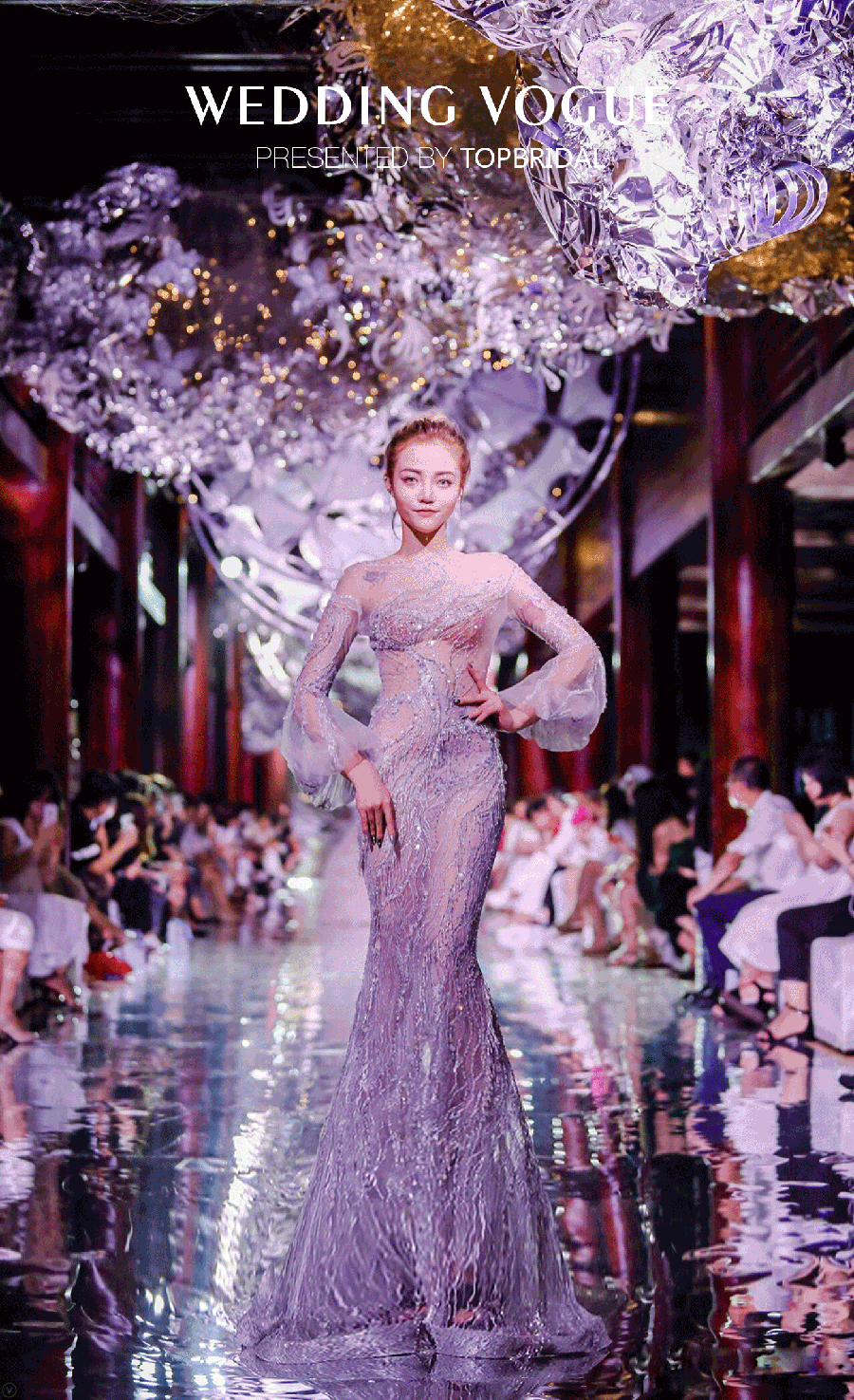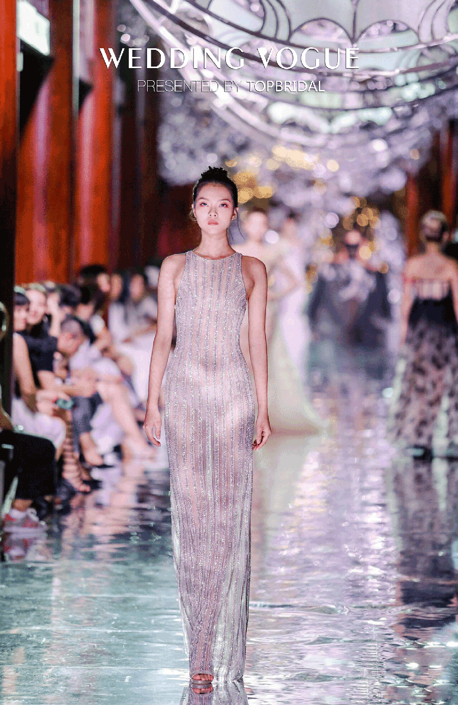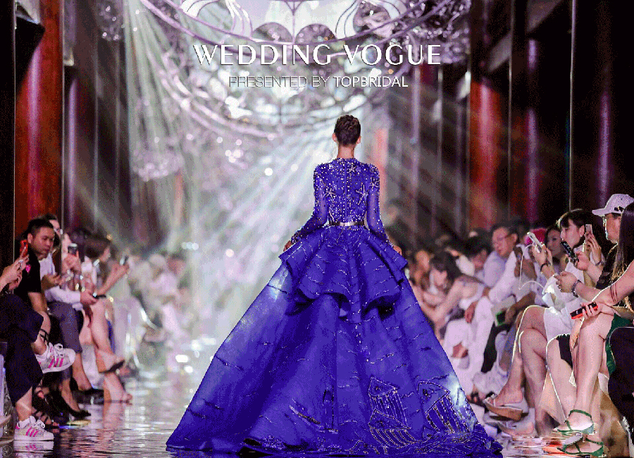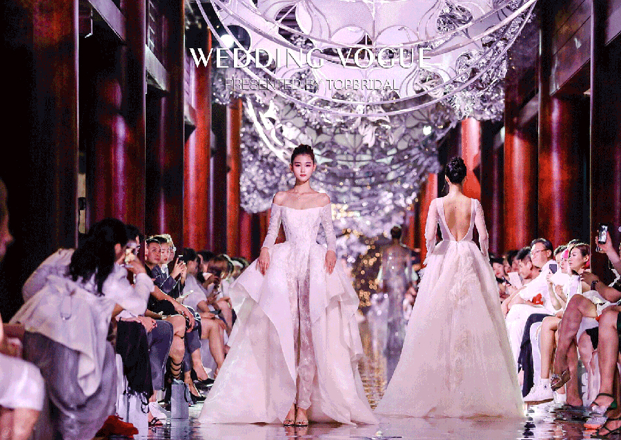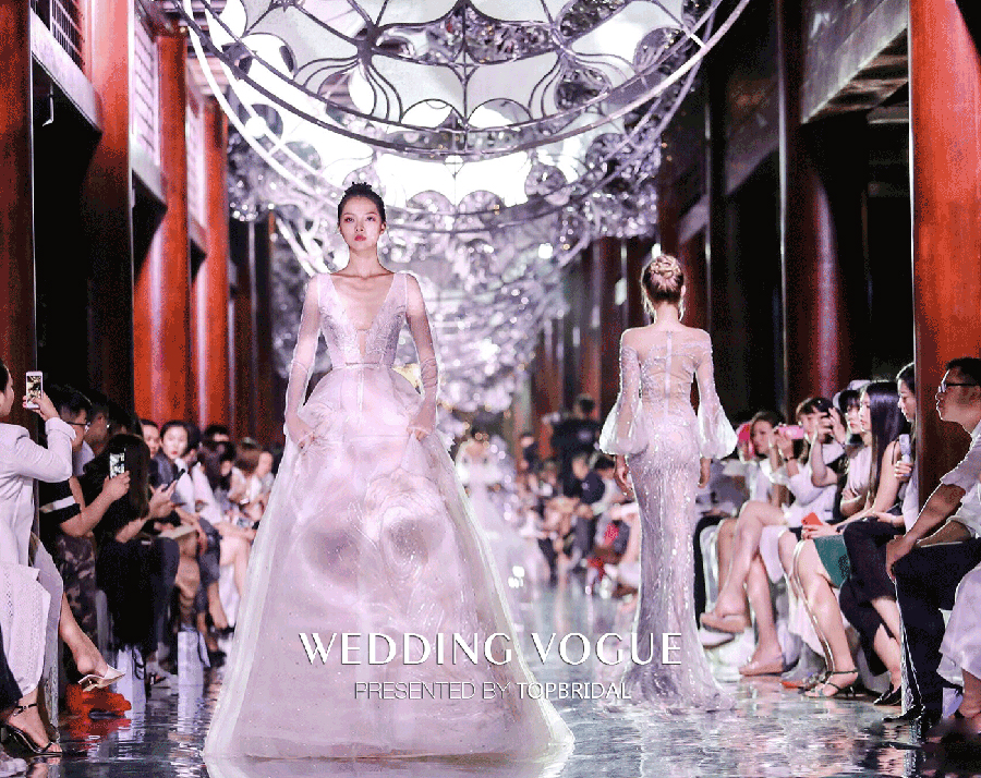 在华丽复古的舞台背景和灯光渲染之下,TopBridal的所有婚纱礼服的精致和优雅一览无遗,让人叹为观止。