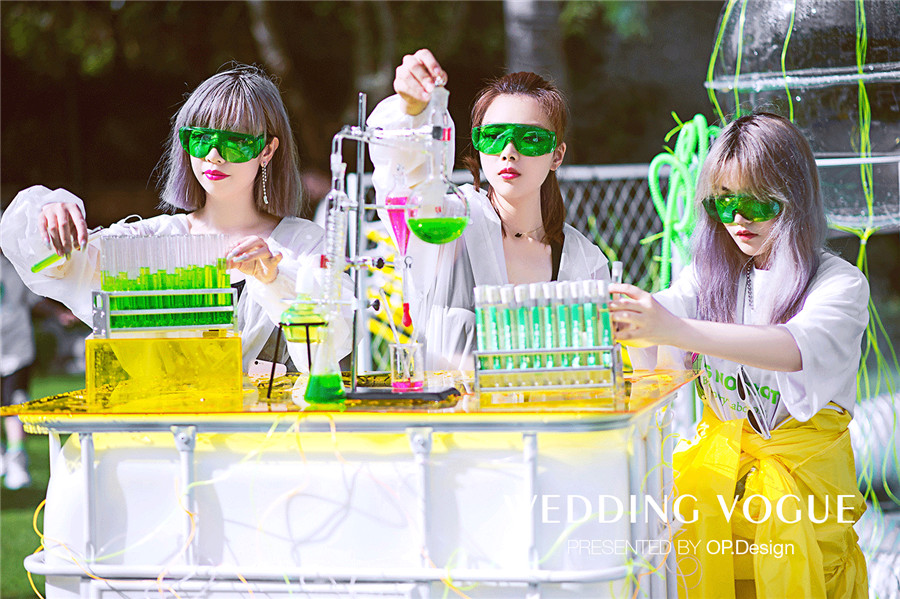 7月17日,OP.Design宴会设计发布《NO.7》率先亮相,用互动体验式来表达婚姻问题,将婚姻中常见的“七年之痒”病毒命名为“7Nzy717”;还将整个宴会设计发布现场演变成NO.7生化研究所,专门用来研究生产解毒血清分发给学员......时尚新颖的设计理念,场景与流程的充分融合,单是这样的设计理念就让人眼前一亮。