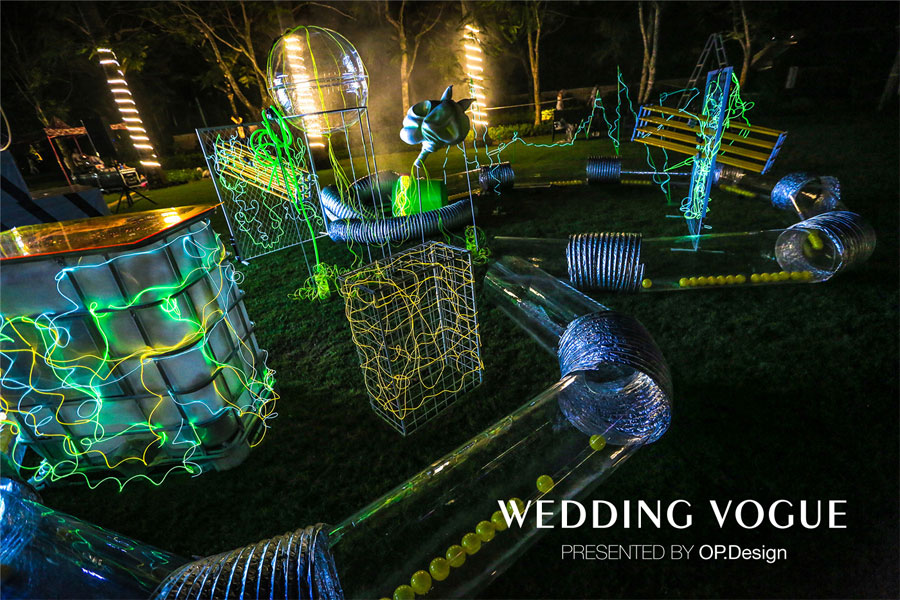 直到夜幕降临,才发现宴会设计发布《NO.7》只是OP.Design率先曝光的冰山一角,因为它只是答谢晚宴负责互动拍照的功能区域。