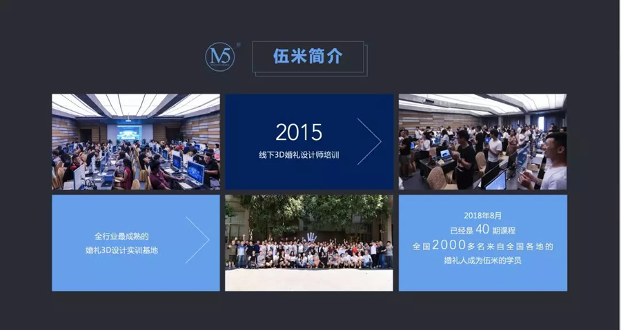 其实在共享平台成立之前,伍米3D做过相关调查,在他们2000多名学员中,有85%来自婚庆公司老板,70%来自即将或者刚刚创业的人员,他们发现从事这个行业的人数逐年增加,覆盖的地域越来越广,而且大家把婚礼设计放在最重要的位置。