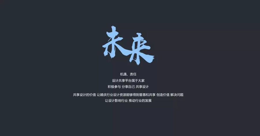 这四个版块包括建立人人共享的设计素材库、由平台筛选的优质设计师入驻、以及让设计师经典的设计作品价值再次被利用并不断创造价值的方案市场,以微课堂、微视频、碎片化的呈现方式,建立一个专属婚庆行业的设计知识库,这些版块的建立,让婚礼设计师共享平台能面向全行业的婚礼人开放,设计师资源、设计素材资源等全方位开放,未来可以为整个婚礼行业人员创造更多机遇和价值,当然平台也将肩负更大的责任。