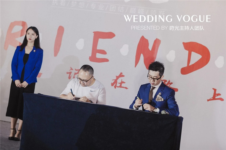 8.29,莳光不仅仅现场宣布与婚礼风尚进行合作举行了签约仪式,更进一步的拓展了自己的主持力量,有南京广电的各位专业的播音主持人加入莳光,更现场宣布将与南京各高校进行联合,对播音专业的学生进行系统专业的婚礼主持培训,并与南京当地三家知名的婚礼堂进行合作,为莳光提供专业的培训场地。