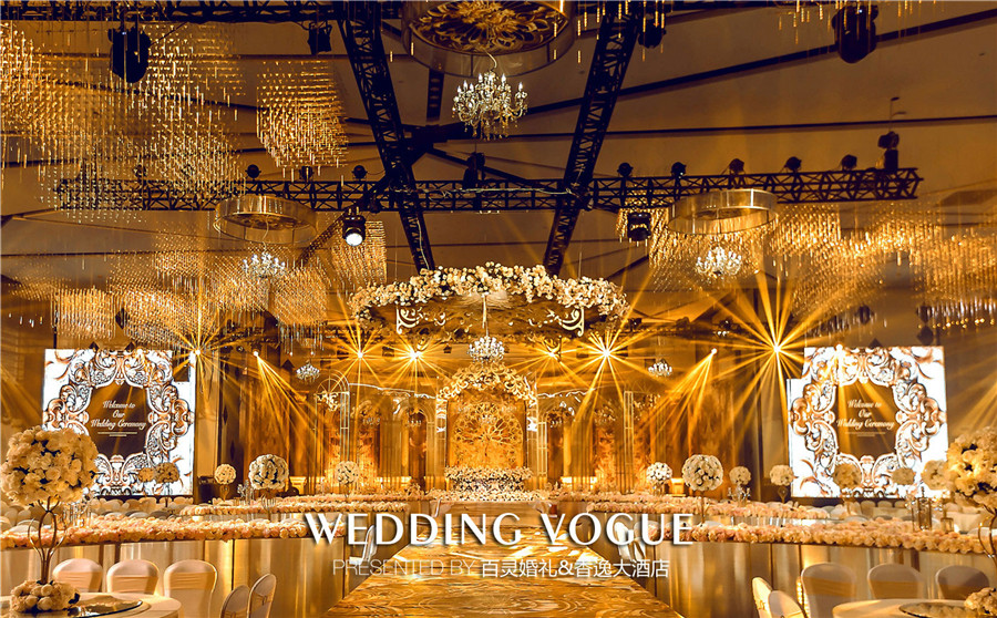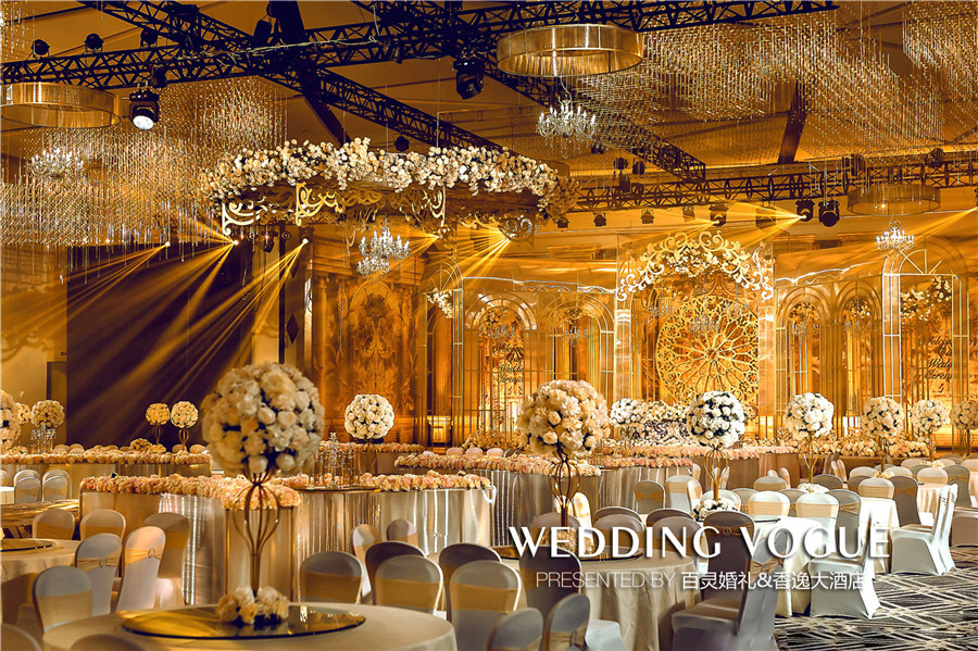 酒店拥有不同规模的宴会厅12个,其中,香逸、香阳两个无柱大厅,以规模宏大、配置现代、层高8余米的恢宏气势,成为高端婚礼的首选。而本次百灵婚礼秀也是香逸大酒店开业首秀,为此百灵打造了一场梦境般迷幻又华丽重彩的一站式婚礼盛宴。