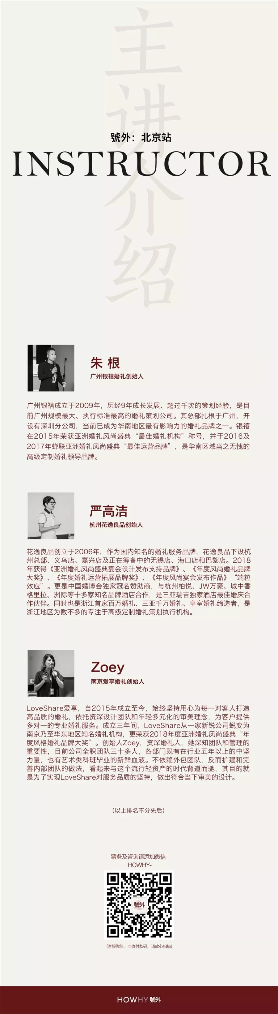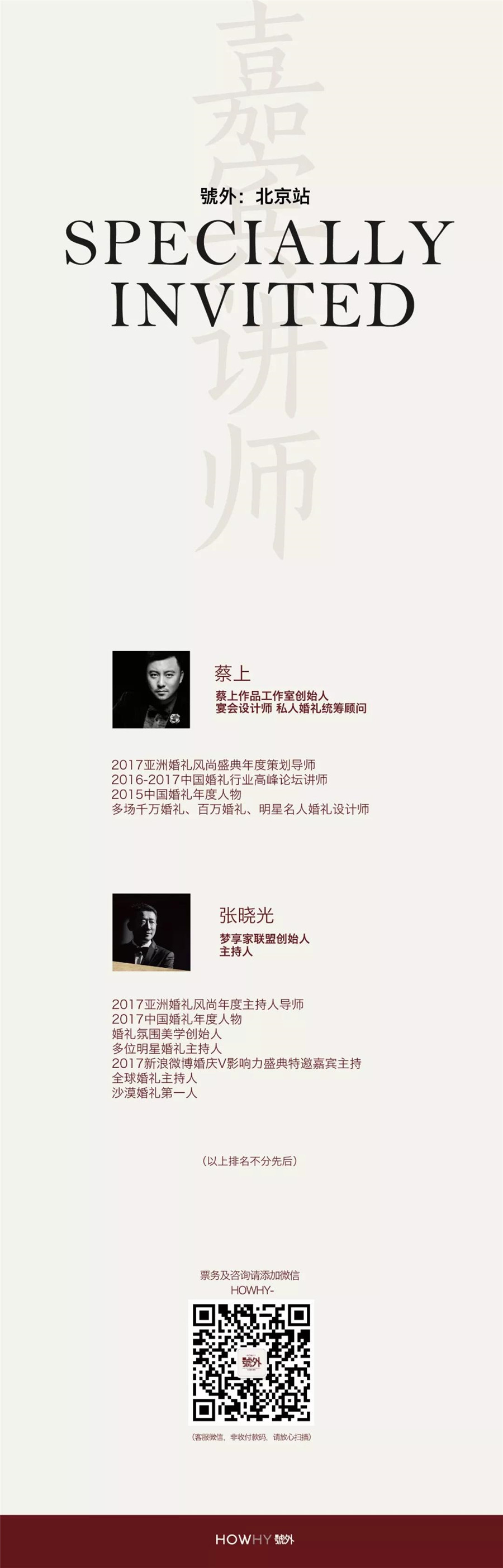 號外每一站都将邀请婚礼行业资深婚礼人担任嘉宾讲师,首站北京邀请到了知名宴会设计师蔡上以及著名的主持人张晓光来为大家答疑解惑。