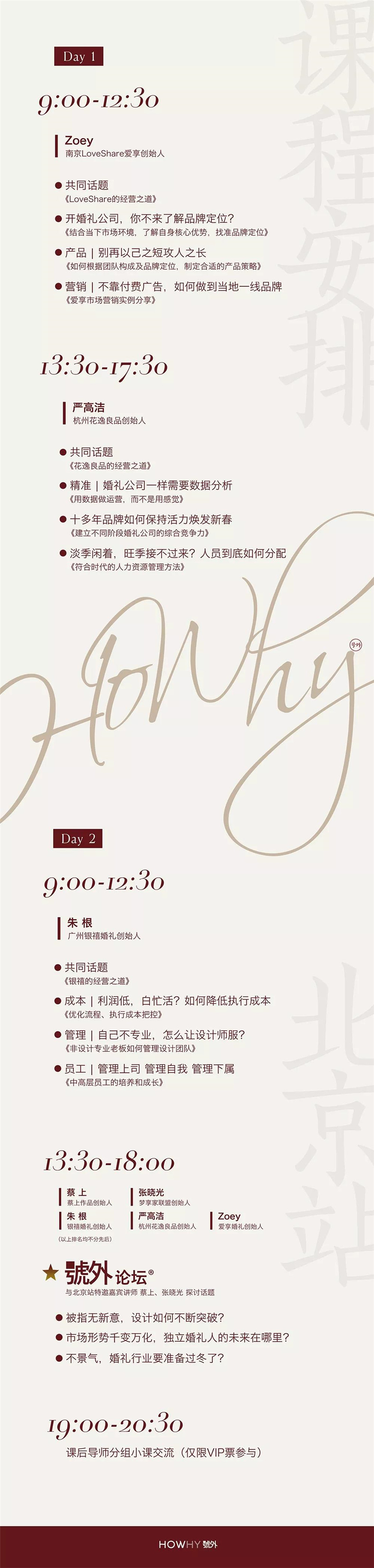 运营的基准、经典案例的解析、公司管理的根本,那些你想得到和想不到的都在號外能够被你得到。课程结束还有课程导师分组小课交流(仅限VIP票参与),干货满满。