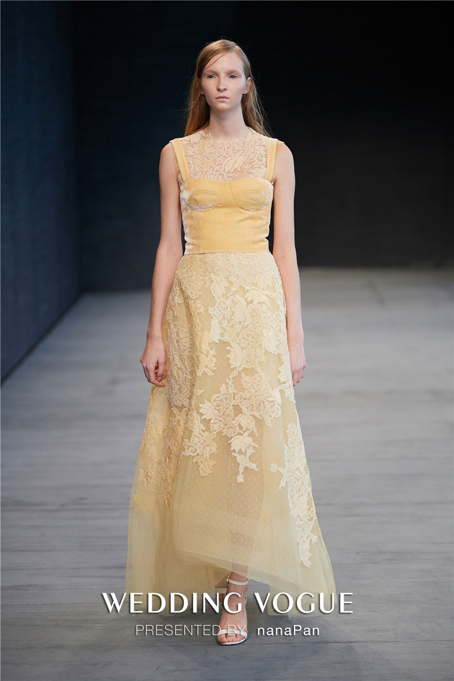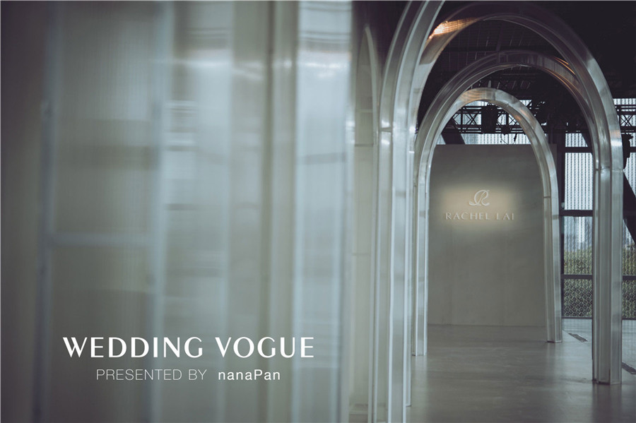 优雅极致的RACHEL LAI,现场整个场景呈现出的氛围,是静止的。秀场场景使用到淡青灰色的穹顶拱状设计,让轻薄的纱质,温柔的颜色,每件礼服上精致的细节都随着音乐缓缓而出 。