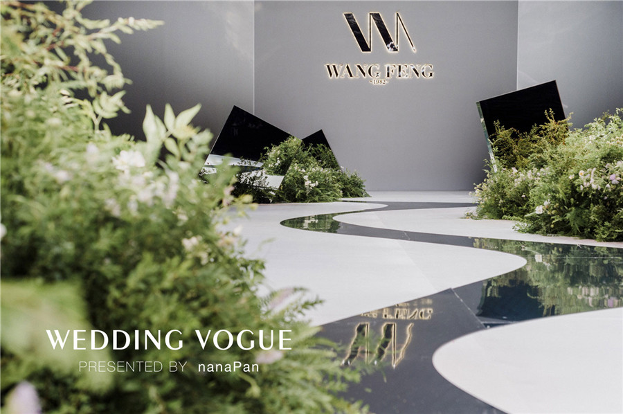将T台设计成流淌的河流,繁茂的森林,无边翠绿与繁花的畅想悄然呈现在秀场的每一个细节之处,华裳款步仿佛穿越时空,以便追逐万物之本的WANGFENG ,从自然中蜿蜒优雅而来。