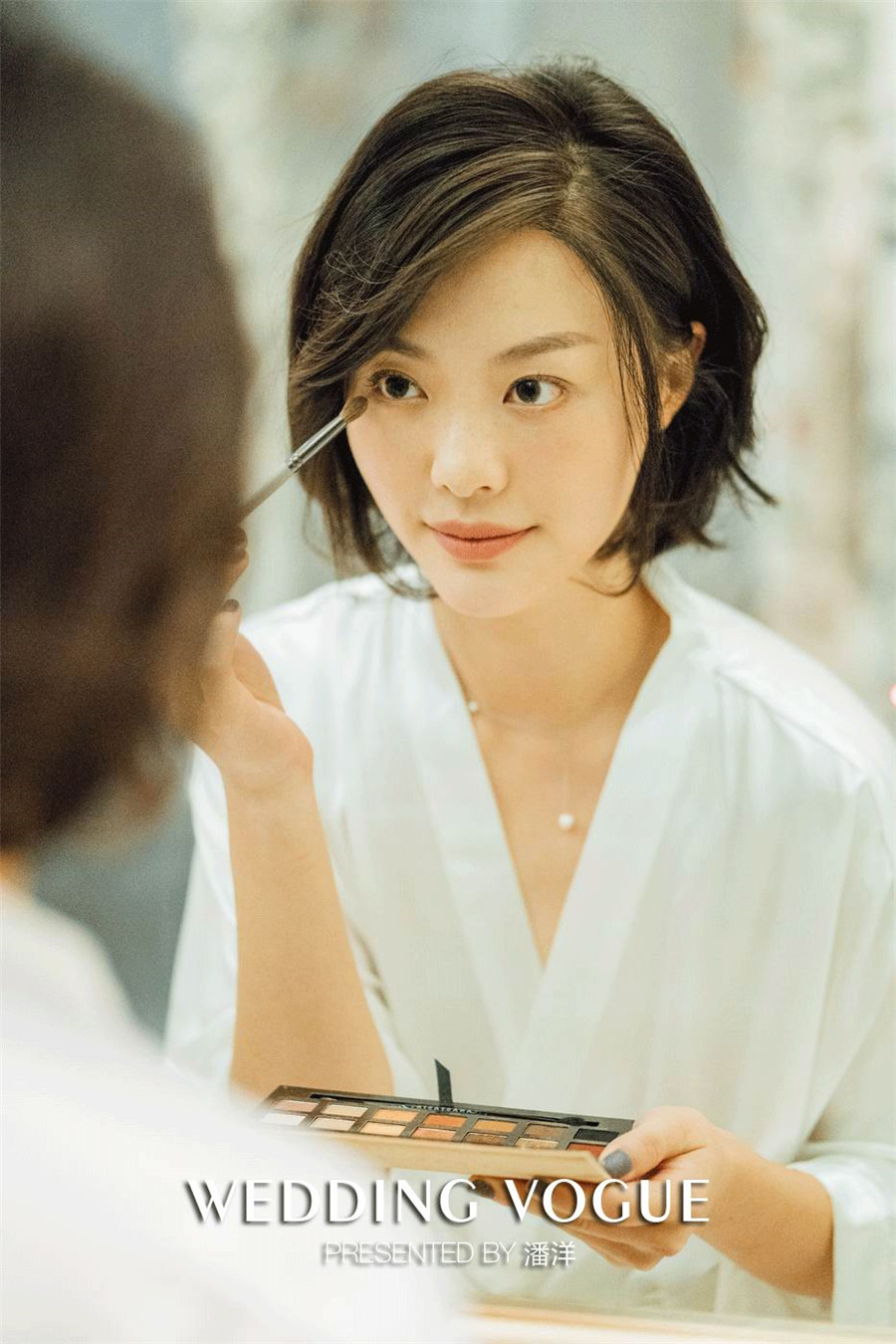 “化妆不是让人掩盖自己,而是去还原,让新人更像自己。从专业角度分析,我更在意皮肤质感的体现,千万不能假。眉毛我也很在意,会起到画龙点睛的效果。这两点是可以看出化妆师基本功力的。”淡妆浓抹总相宜,这是潘洋对化妆,对美的理解。