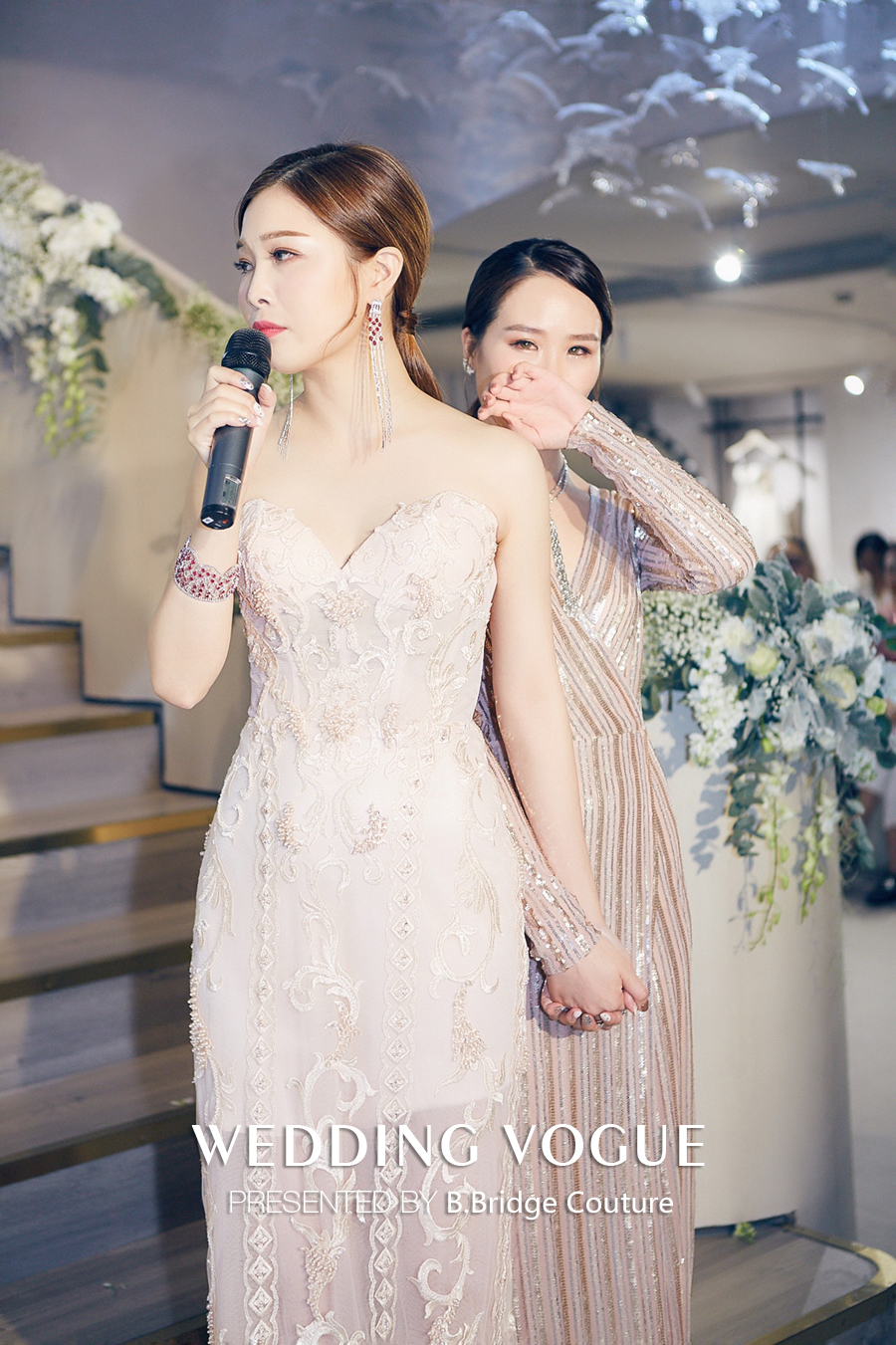 而为了这份使命感,设计师甚至花费20多万去法国到香奈儿秀场专门学习香奈儿法绣。而鹿子为了将B.Bridge Couture品牌店设计甚至服务做到更好,还专门飞到韩国,学习韩国优质婚纱礼服店的格局与服务,并将其优质理念带回B.Bridge Couture。
