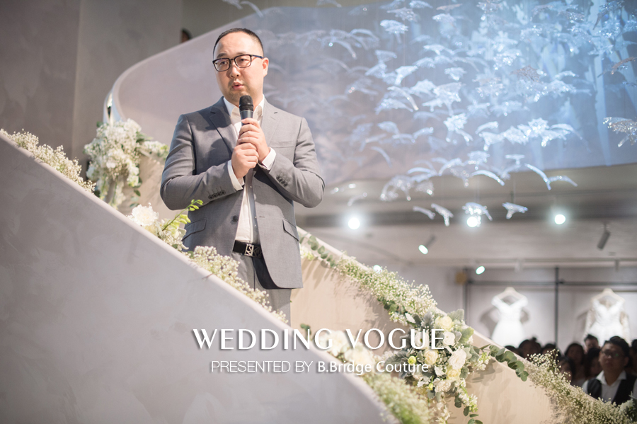 而婚纱礼服品牌的开业仪式,婚纱走秀环节自然是重头戏。走秀部分分为三个环节,轻礼服、全红礼服、与B.Bridge Couture代理的来自韩国的高定品牌Rose Rosa与来自欧洲的Julia Kontogruni分别走秀。