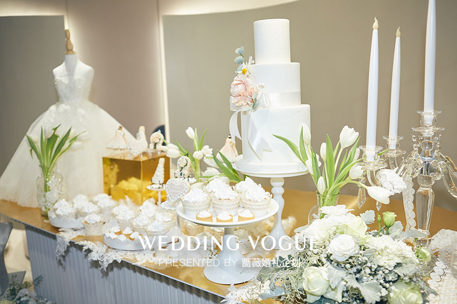 在当晚的开业酒会上,B.Bridge Couture邀请到广东专注高端定制的婚礼机构蔷薇婚礼企划来为他们操刀设计。他们提炼出白色、蕾丝、纯洁三大元素与场地空间相结合,将B.Bridge Couture品牌视觉符号化。