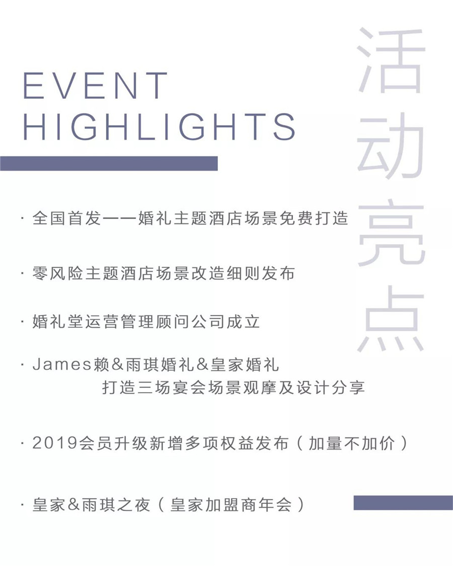 此举是为了凸显皇家会员的优势,我们紧密联系在一起,未来,要让皇家会员成为全国婚礼行业令人羡慕的名称。