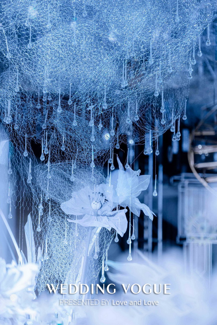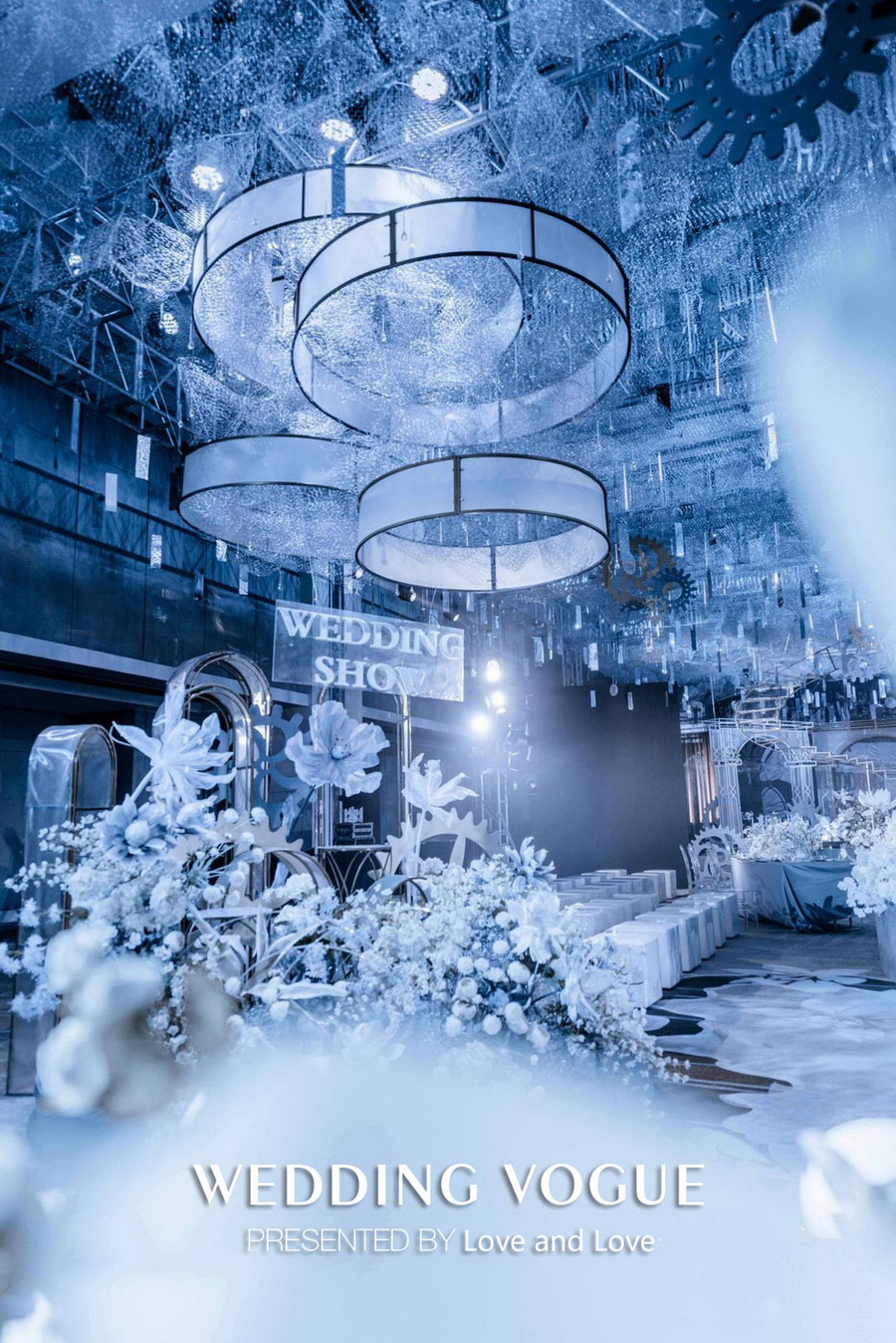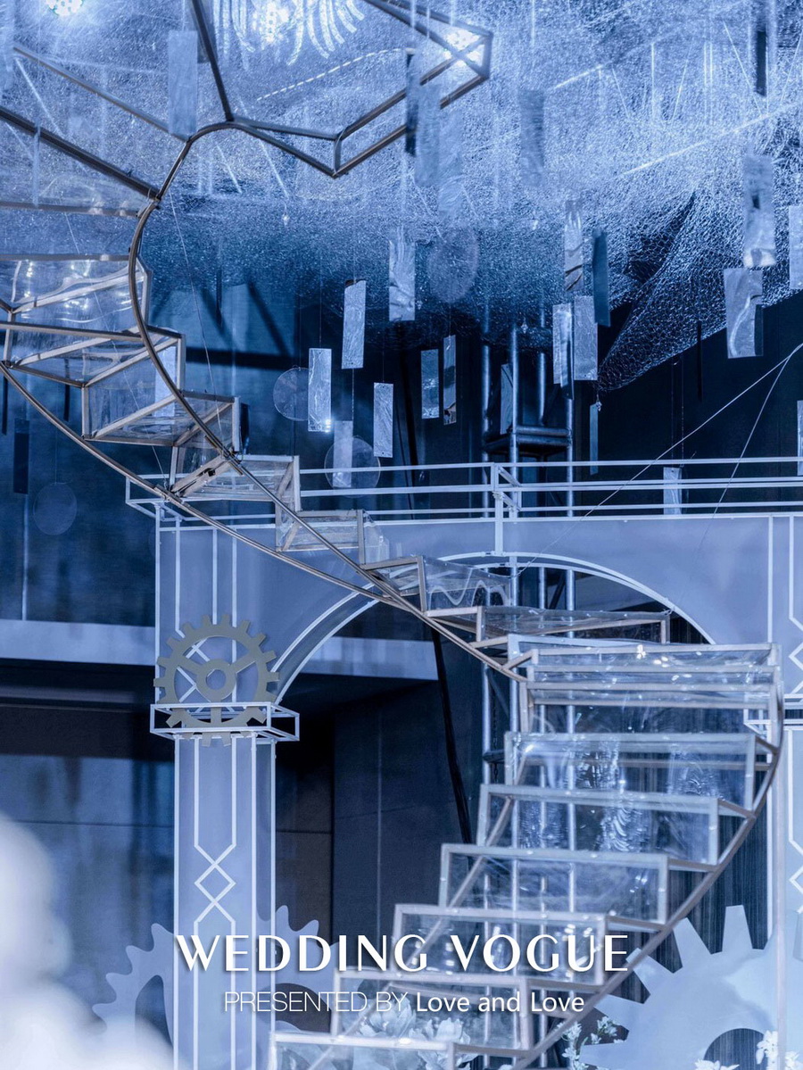 利用铁丝、亮片、水晶、齿轮等装饰物品营造上层唯美的感觉,将齿轮作为主舞台背景,表达了时光的一点点流逝。