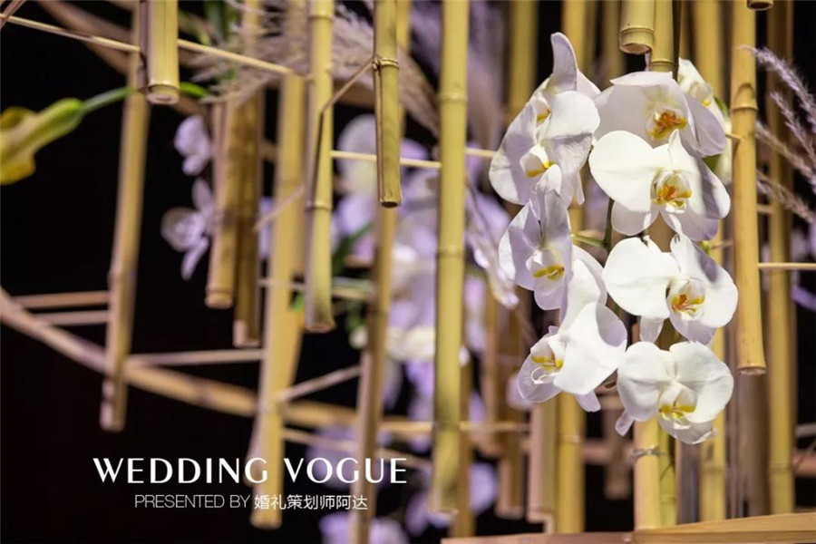 不是初看时的惊艳无比,却属于细观之后的回味无穷。清雅、淡泊、坚韧、美丽,那些属于中国新娘的特质都被婚礼策划师阿达的《玉韵兰质》展露无遗。架构简单却韵味悠长,仿佛那一朵朵高洁的兰花不是盛开在他的作品中,而是绽放在了人心里。
