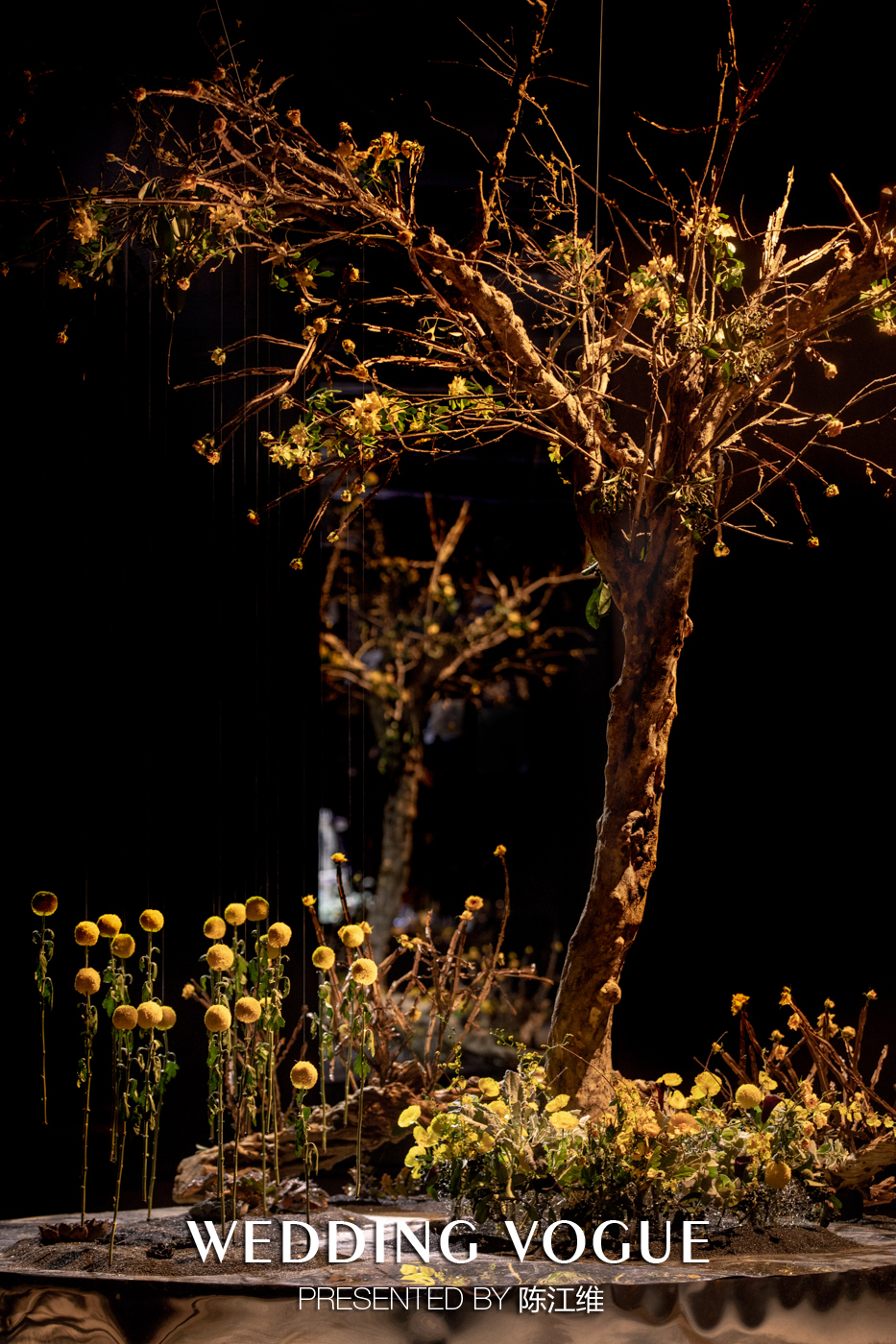 此次花艺创作展,陈江维以《金陵之秋》为主题,欲通过花艺布景展示古都南京的意蕴。而选择以「秋」作为表现基调,则是想通过季节表达时间。在时光流转中,一座城的押韵时光,或许就隐藏在这一草一木,一明一暗间。