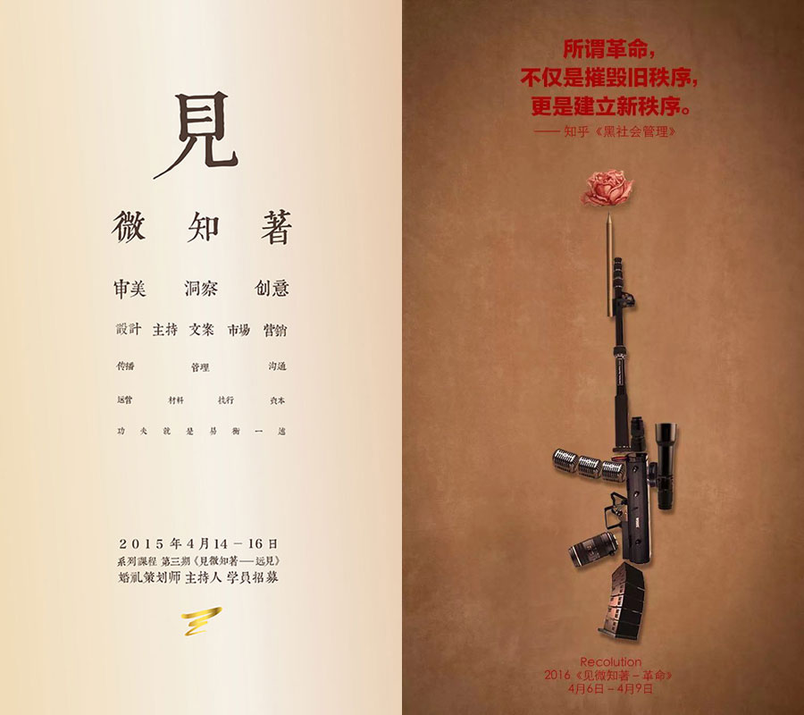 甚至很多人拿着课程上的内容,回到当地开班授课。对此,我们并不反对,反而持欢迎的态度。我们甚至在课程上提醒学员,可以拍一些课件的照片,也不禁止录音。好的理念需要分享,见微知著是一个自信而又开放的课程,因为自信,所以开放。