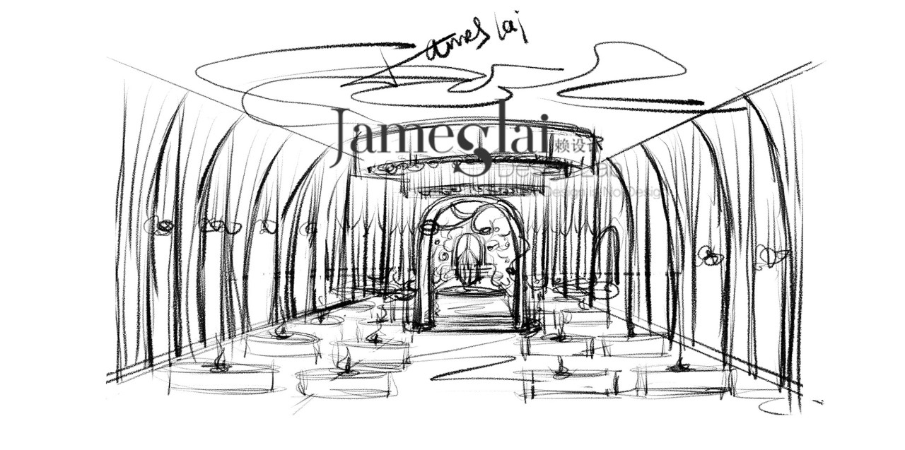 此次的设计不仅仅是塑造沈阳禧悦酒店的品格,也将会间接的影响到沈阳地区未来的婚礼市场格局和潮流,于是酒店方找到了James赖为酒店量身设计打造婚礼堂。