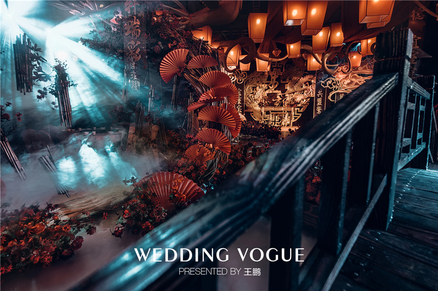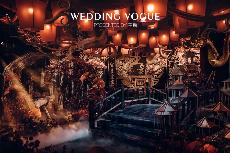 来自重庆的宴会设计师王鹏,在厅中造了一座具有东方魔幻意味的中式场景。