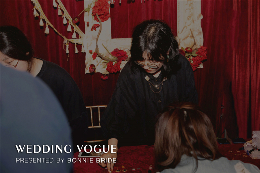 除此之外,现场设有的DIY环节,是可以通过手把手的现场教学,教你打造精美复古首饰及领结。这让到场的小情侣们即使排队也要打卡体验,气氛很是火热。