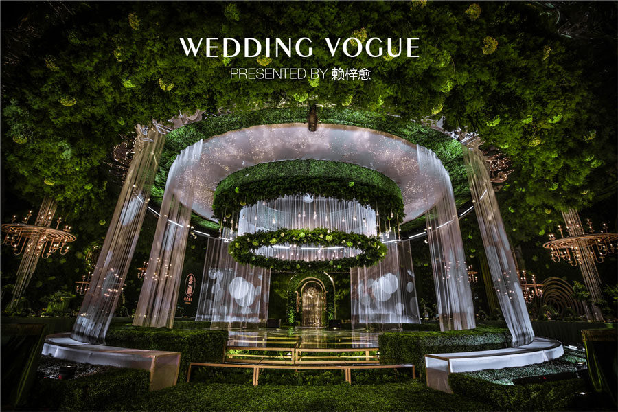 整齐划一、干净大气绿植视觉会是整场婚礼的重点,而焕发新生的绿色则作为主色调。