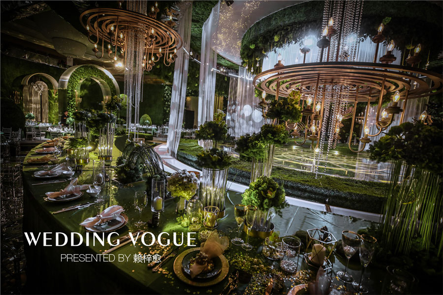 “绿阴铺野换新光,薰风初昼长。小荷贴水点横塘,蝶衣晒粉忙。”夏天给人最深的感受莫过于勃勃的生命力,万物生长的力量总让人充满惊喜和期待。所以如果一定要给夏天赋予一种色彩,我想绿色一定是毫无争议的了。当然作为时尚元素的绿色,也是夏日婚礼中出现的常客。