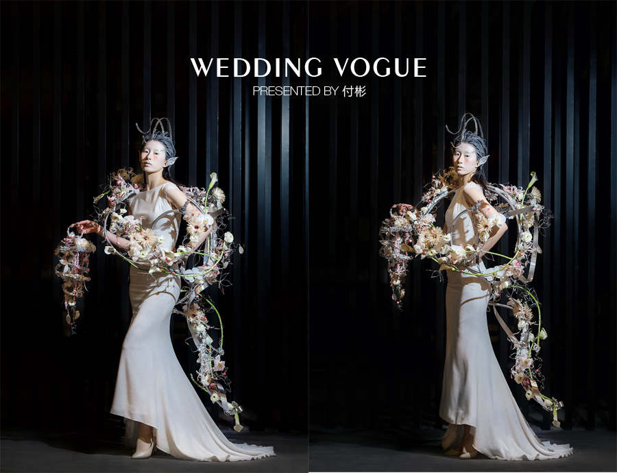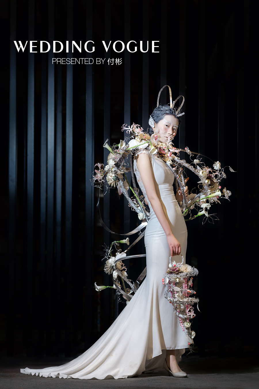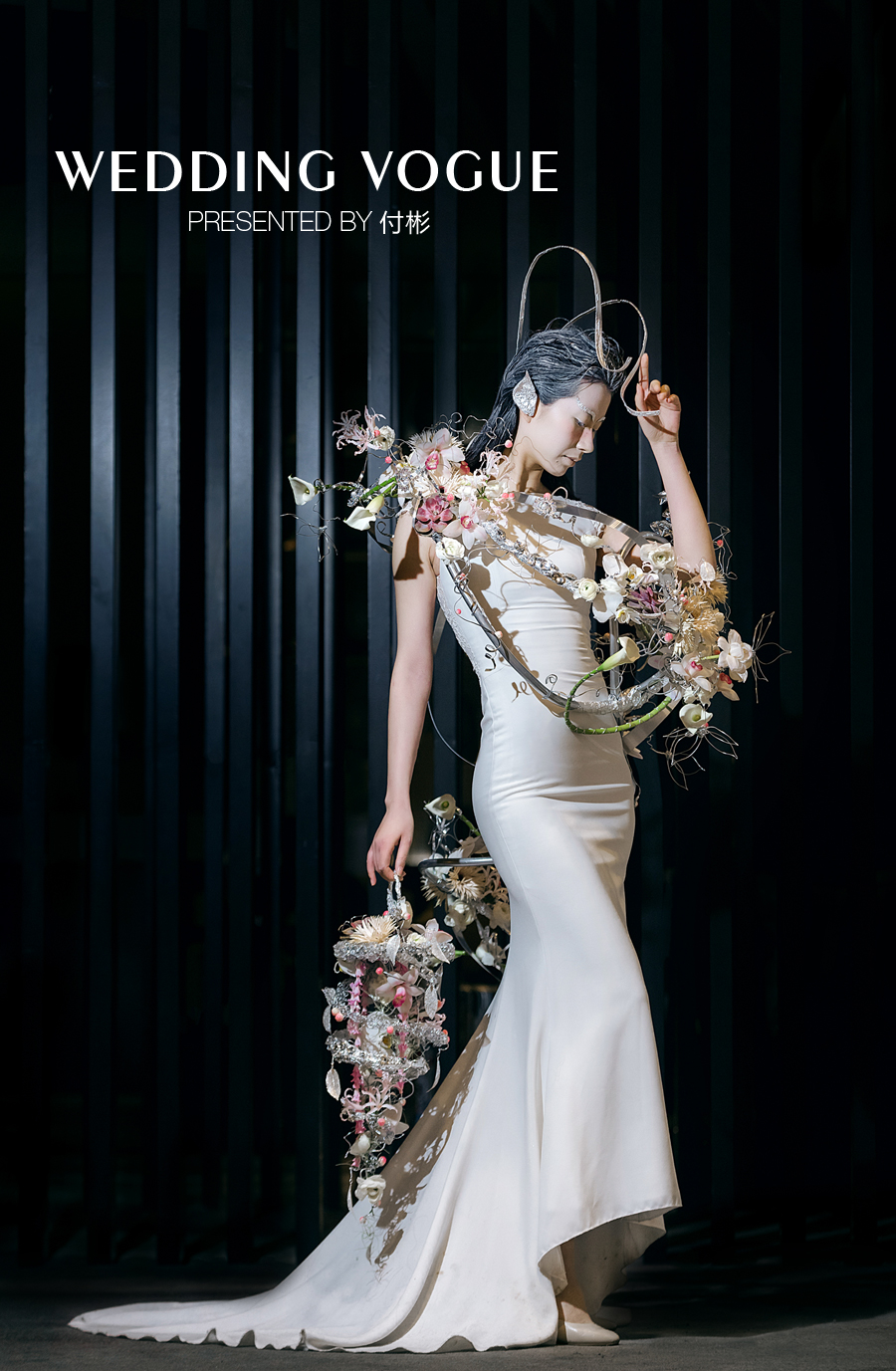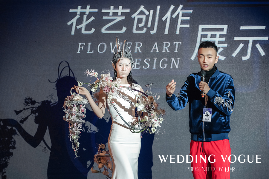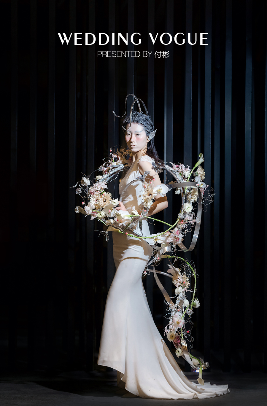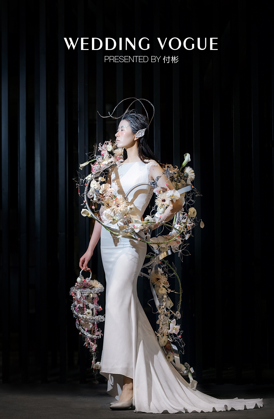 对于付彬而言,无论是2018年以奢侈品风格概念的餐桌设计亮相首次婚礼风尚创意设计大赛,还是此次用更挑战性的人体花艺参与2019婚礼风尚创意设计大赛,都是他在寻找以花艺为突破口的设计创新形式。