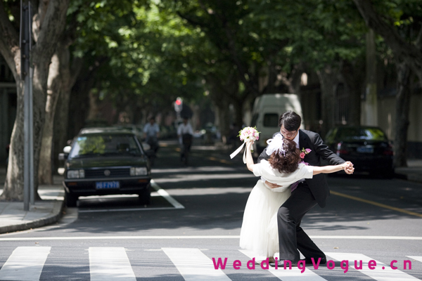 经典的下腰动作,但我们要备注一下,这个动作是两位在马路中间跳完一段华尔兹的结束动作,而不是简单的拗造型