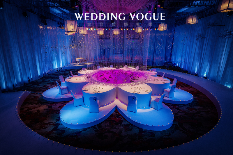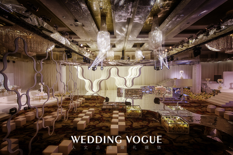 喜欢古希伯来文化的欧城礼仪设计总监Caleb Rai根据希伯来文第十二个字母“ ? ” 演变成的图文来贯穿整场设计,并注入Caleb Style时尚空间格调,呈现一个摩登并新锐的艺术空间。现场采用古希伯来建筑群手法高低层次排列体现的空间布局。并在主舞台由七片图纹叠加成的w字母体现了“W ”&“V”(Wedding Vogue)随着不同视角产生不同奇特的效果。