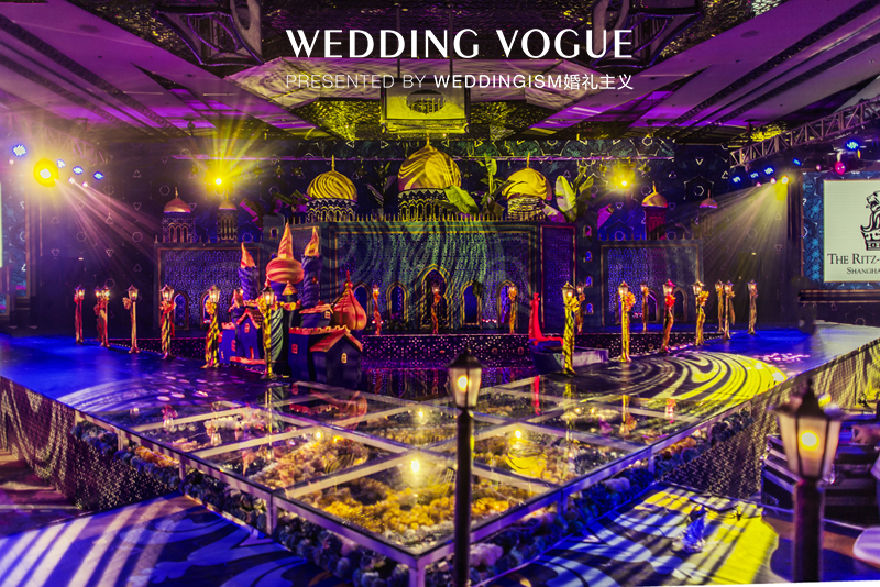 就拿去年夏天在浦东丽思卡尔顿的婚礼秀来说,不管在流程的设计上还是在宴会布置上都带给了来宾全新的感官体验。以Secret Blue为主题,从走下电梯的那一刻起,就像踏入了神秘的异域国度。无论是色彩丰富的水晶挂灯还是造型各异的玻璃器皿,又或者是宴会大厅天穹中牵引出的万缕银丝,都在尽情打造东方国度的极尽奢华。开场由性感妖娆的肚皮舞娘引领宾客们走上华丽炫目的主舞台近距离的感受整场婚礼秀奢华闪耀的氛围。来到这,就会觉得不仅仅是来到一个婚礼场地,而是可以全程参与去感受婚礼背后的文化与故事。