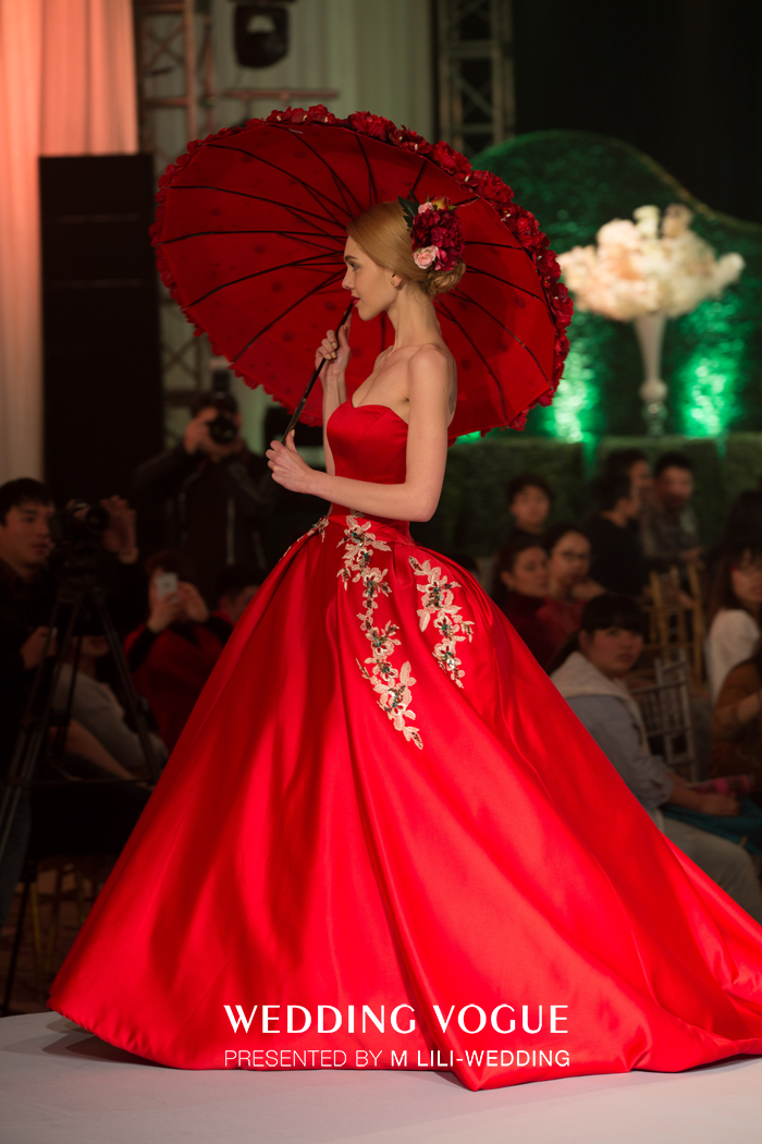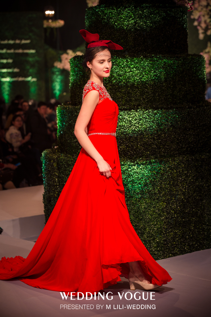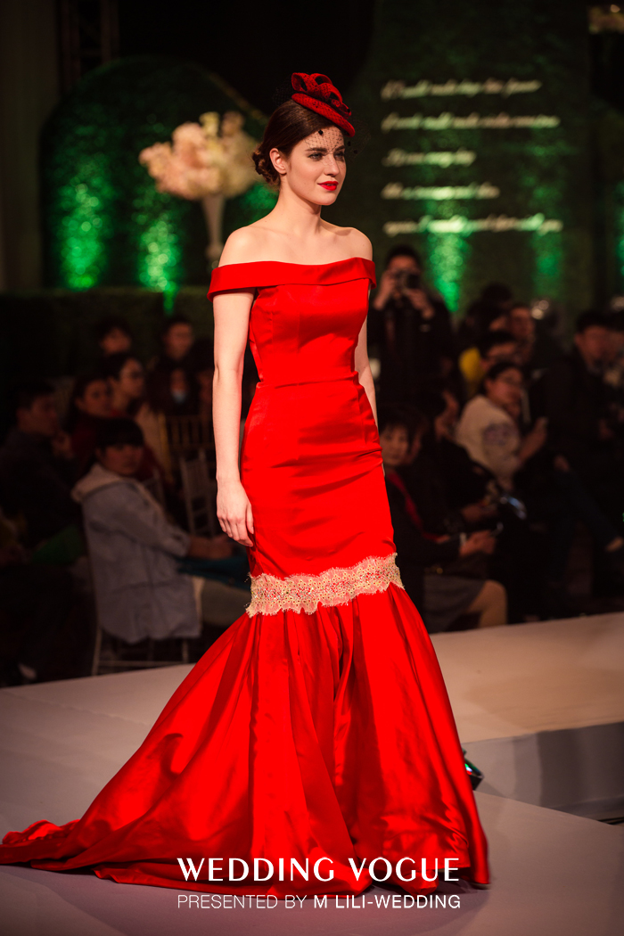 在现场,观众更是目睹了MLILI婚礼策划精心为大家准备的婚纱秀,复古优雅的红色晚礼服,在外模的演绎下,英式贵族气质彰显无遗,惊艳全场。