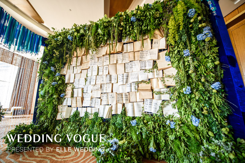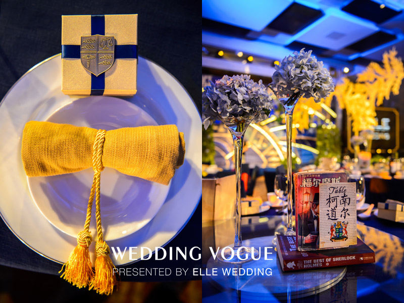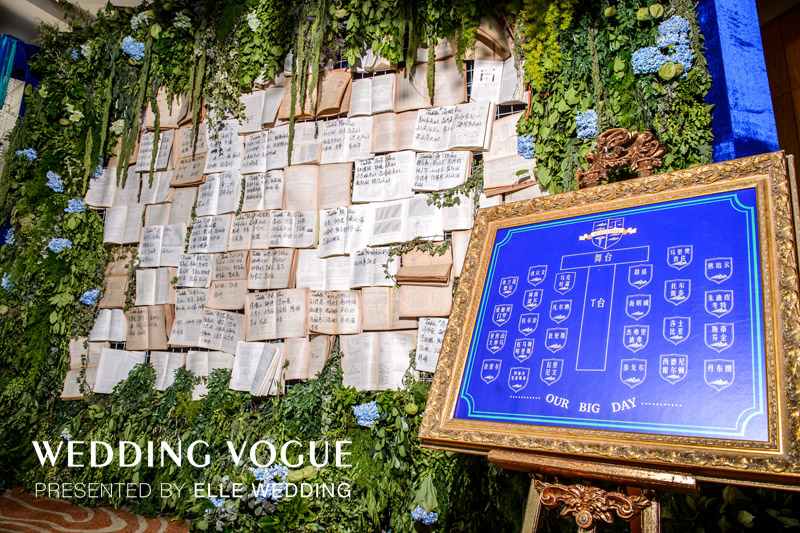 席位区更大范围的引用了新人的喜好,新郎喜欢看书,现场将来宾的名字全部写在了一本本旧书籍上,让来宾在找寻自己的座位号时,也能感受到书卷的香味和婚礼的细节创意。另外,在现场,还可以看到很多不同类别的书籍,厅内每桌都以一位作家命名,共25位。同时,每桌放置两本书,这些书全部来自新郎家里的书架。