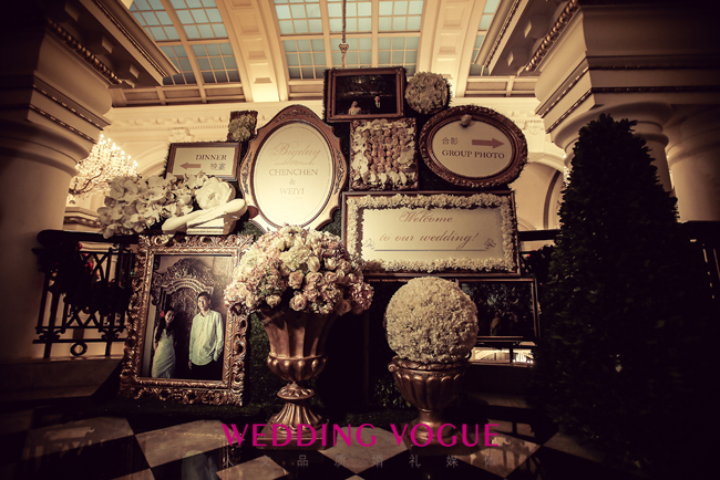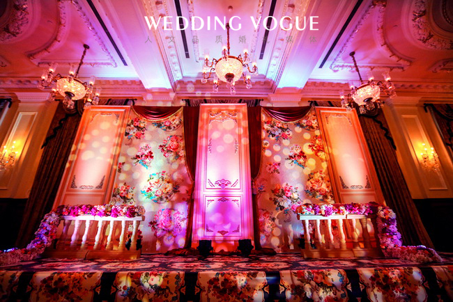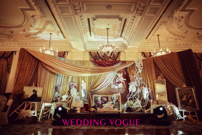受到Dolce&Gabbana 2013春夏流行趋势的影响,在这场流金溢彩的婚礼现场中,唯美华丽的装饰主义风格,繁复精细的印花图案,和充满古典情怀的上海外滩华尔道夫酒店相得益彰。