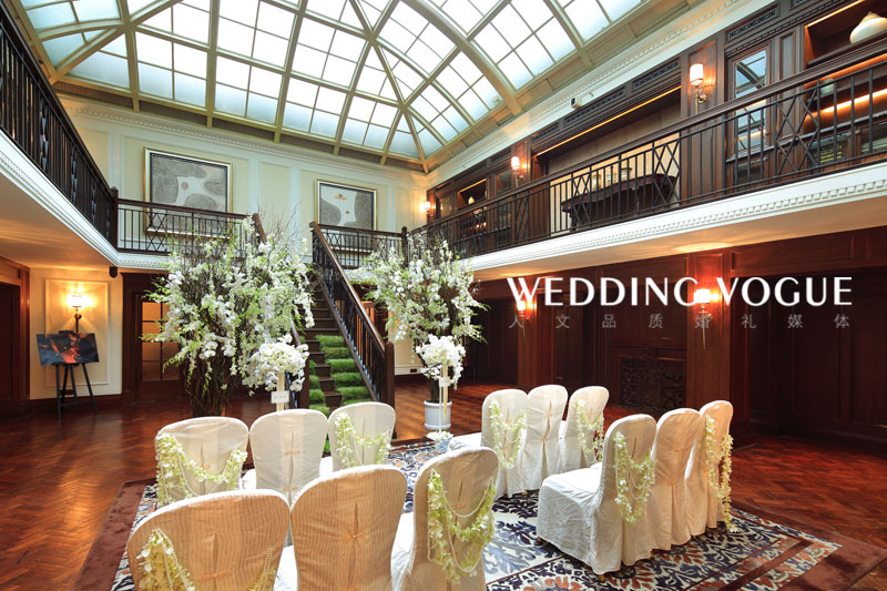 极具欧洲人文色彩的外滩华尔道夫总会厅是一个华丽亦私密的宴会场所。在这个面积420平方米,可容纳200位宾客的豪华大厅内,除了设有能让宾客饱览临江堤岸迷人景致的落地玻璃窗之外,宽敞的面积还可供婚礼机构布置长桌婚礼,铺设舞池地板。在整体呈“回”字型的内部格局里,独特的楼道区域可做单独的留影空间,哪怕是在同一楼层,华尔道夫都能让新人享受单独的仪式宴会厅,和独立的甜品茶歇室。酒店至今都还保留着的那部三角升降电梯,可乘载宾客直达宴会厅。那些木质的装饰墙壁,老式红木的楼梯,不仅使酒店自身格调别具一格,对于欧式复古,华丽宫廷,亦或是清新自然,摩登中式等风格的主题婚礼,在布置上更能彰显其中的个性与风情。而阶梯前被各种绿化植物和喷泉搭配的中庭,也被认为是上海城中举行露天仪式及酒会的最佳选择。对于新人而言,上海外滩华尔道夫酒店不仅场地实用性较高,且还独具一定的专属空间与私密性。