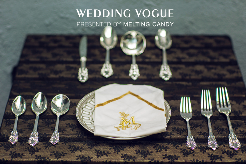 餐具继续延用婚品主题的设计思路,以婚礼主题LOGO为标志,口布的刺绣,采用主题色系金色,做工精致而考究。刀叉匙都印有主题LOGO,这对新人来说,具有独一无二的意义。