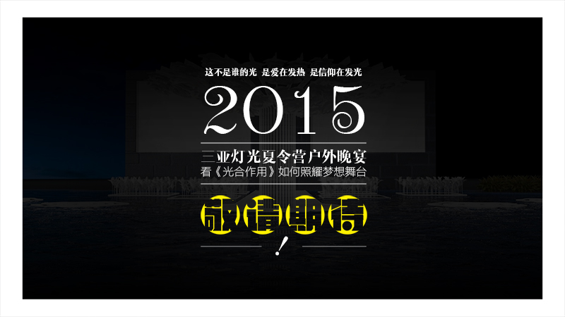 这不是谁的光,是爱在发热,是信仰在发光。2015三亚灯光夏令营户外晚宴,看《光合作用》如何照耀梦想舞台。敬请期待。