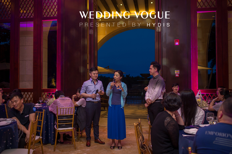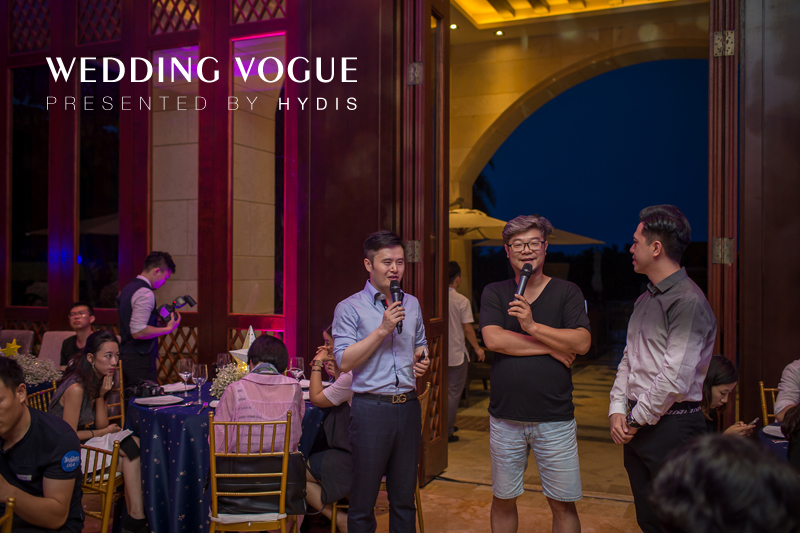 在结束了下午的灯光课程后,学员们都盛装出席了主办方特意为此次活动准备的欢迎晚宴。晚宴现场在云端婚礼服务的精心布置下,以成簇的满天星花材,和坐落其中的星型灯具做装饰,使晚宴能在一室的璀璨与祥和中,轻松愉快的进行。晚宴上,陈纯和来自广州的主持人学员成诺,邀请了各个地区的部分学员代表向大家分享了参与此次夏令营活动的感受与心情。对于这些平日里忙碌的婚礼人而言,这除了是一次有关专业知识的讲解课程之外,亦还是一段难得的渡假休闲之旅。当美食,绝景皆具备,或许那些许湿润的海风迎面相拂时,所潮湿的便是这一方心土。
