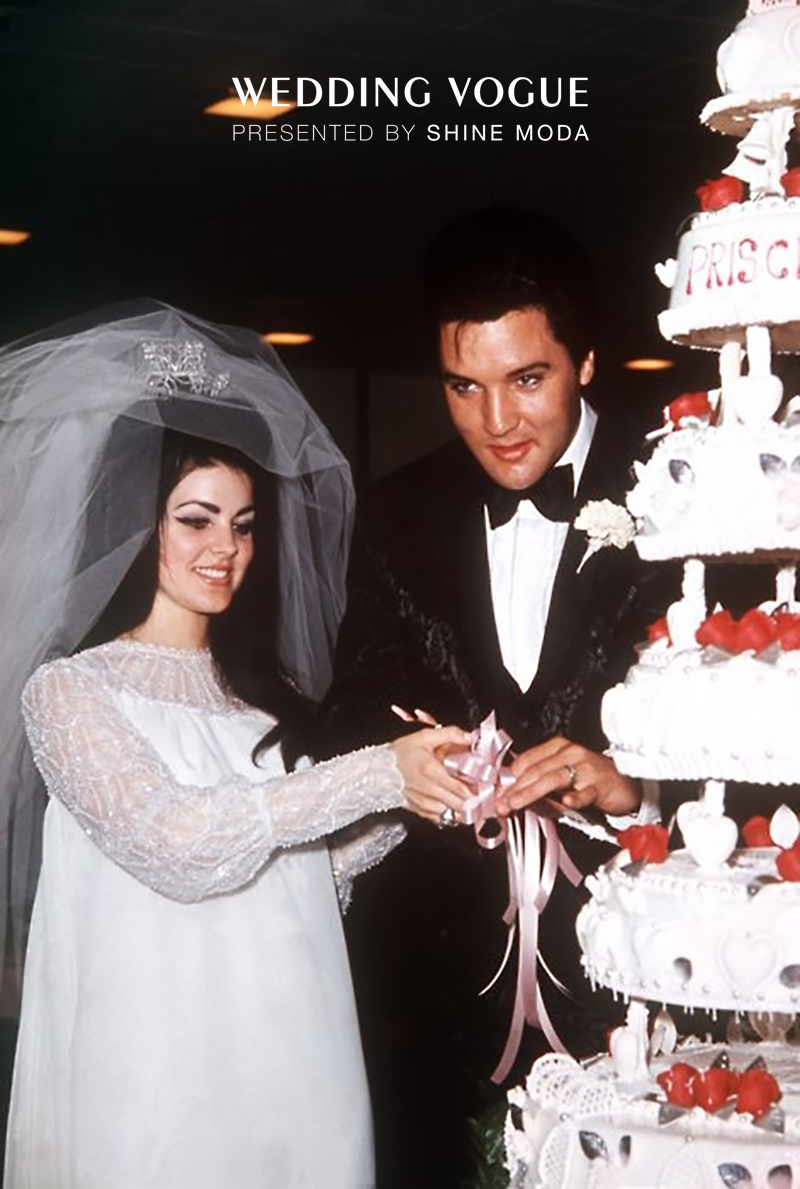 Priscilla Presley与猫王在1967年5月1日于拉斯维加斯完婚。新娘Priscilla Presley的婚纱是由自己本人设计的。这似乎可以算的上是颇具个性的婚纱了。也正是新娘自己对于时髦理念的传达。