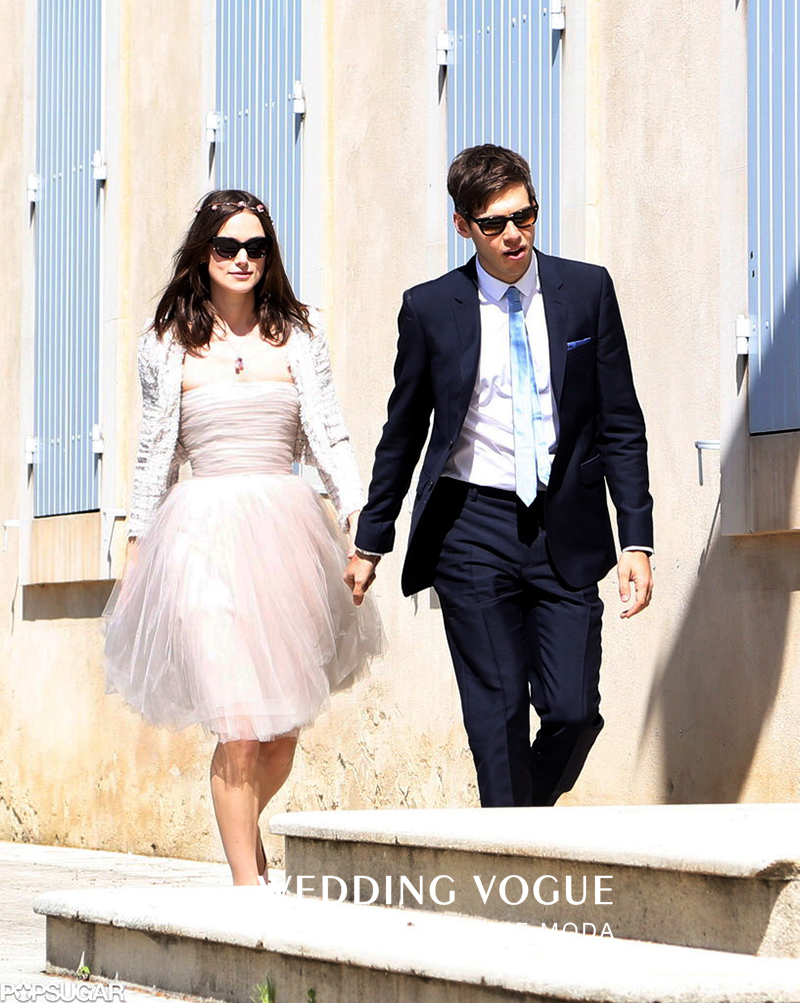 凯拉·奈特利(Keira Knightley)整个婚礼相当简洁;取代奢华婚纱和传统头纱,Keira 以春季芭蕾舞式小礼服作为白纱,头戴小花环。疾走新娘拖着丈夫一路狂奔,一双平底鞋轻松欢快蹦蹦哒哒的就婚了。她的时髦似乎可以是舒适简单的表达。