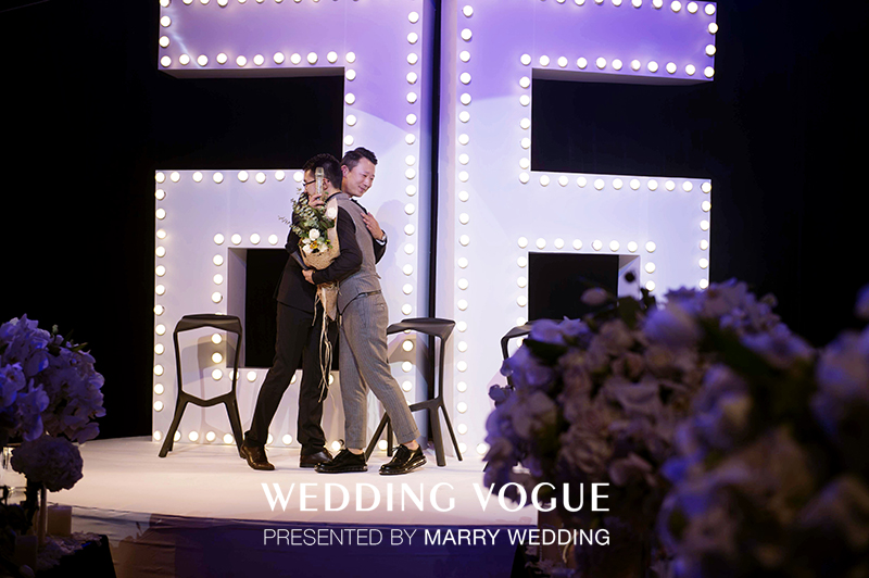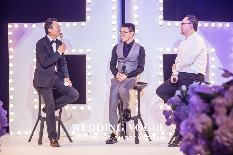 这一次,主舞台上放置的是3张吧椅,麦瑞婚礼策划创始人乐益锋先生,婚礼风尚创始人陈刚先生最先被邀请上台入座,陈刚先生表示:婚礼风尚创办时间同样是6年,虽然领域不一样,但一路走来这其中的感触是一样的,而对于麦瑞婚礼,他送上诚挚祝福,希望未来越来越好。