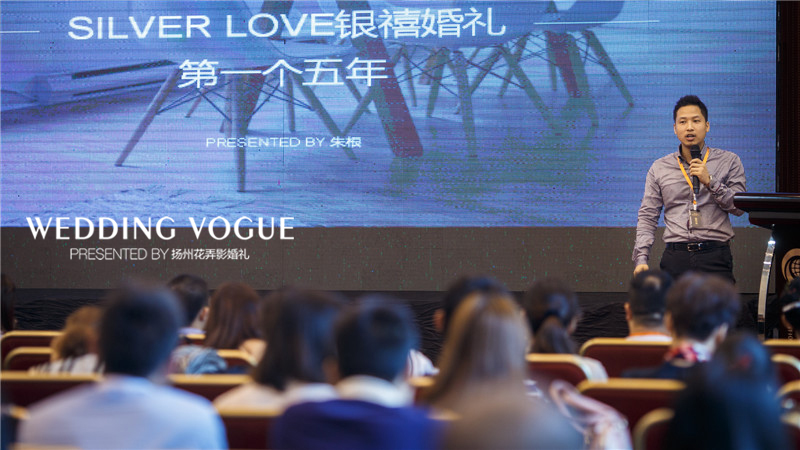 不同于前两位的案例分享,银禧婚礼的创始人朱根与大家分享了《银禧第一个五年》, 透过银禧婚礼这五年的发展历程,向大家呈现了银禧一步步走来的艰辛与不易,以及其在经营管理中的方式方法。从最初的举步维艰到日益得到尊重,让在座婚礼界嘉宾们深深感受到婚礼行业的成长所要经历的化茧成蝶的蜕变与艰辛。当朱根讲到行业起步初期的艰难和得不到应有的理解和尊重时,他两次激动地潸然泪下,引起在场婚礼人的深切共鸣,大家掌声雷动。