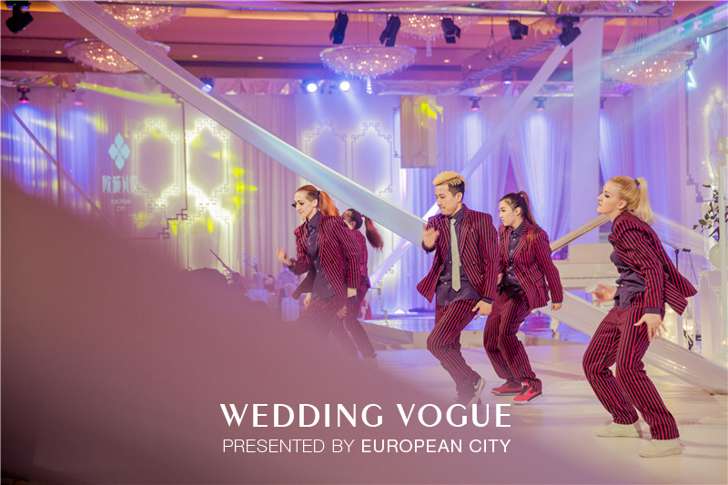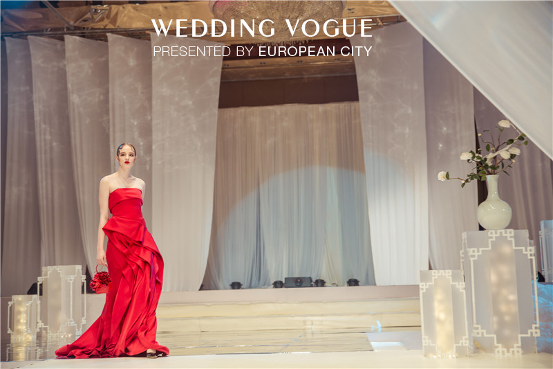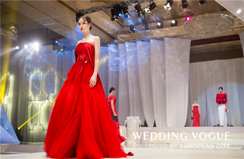 赖教授精心挑选的洋溢着浓厚的欧美风的音乐缓缓响起,身着大红色婚纱的模特自T台的布幔后轻盈而来,似从仙境中走出的仙女。婚纱因循着欧洲最时尚、最大牌的设计,与浓重的中国红结合,穿在欧美模特的身上,与现场氛围贴合得恰到好处。