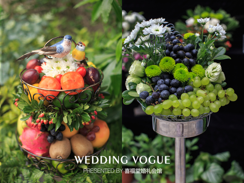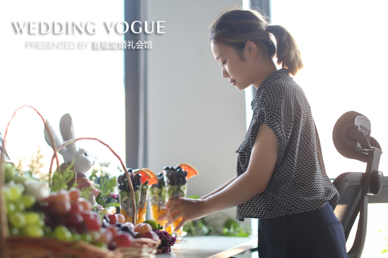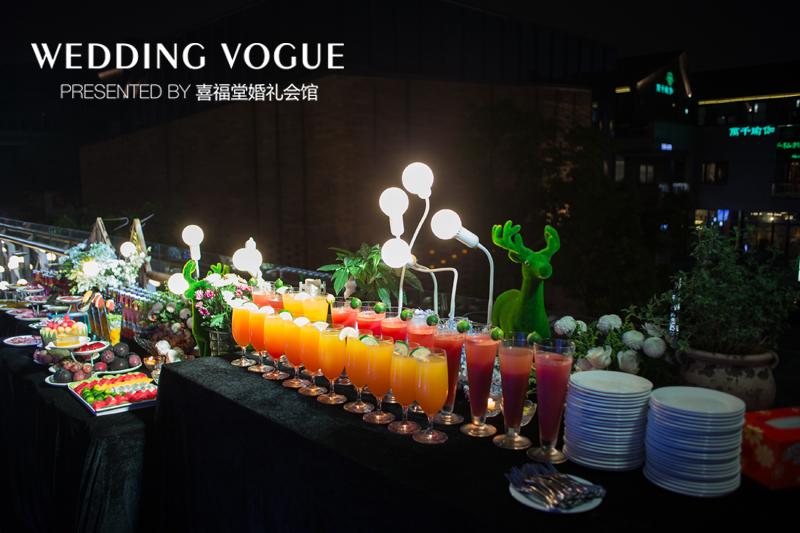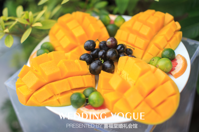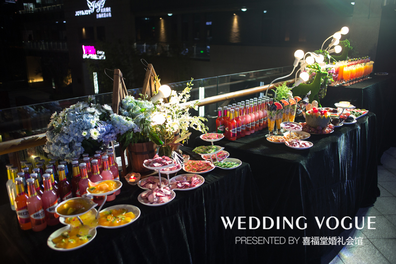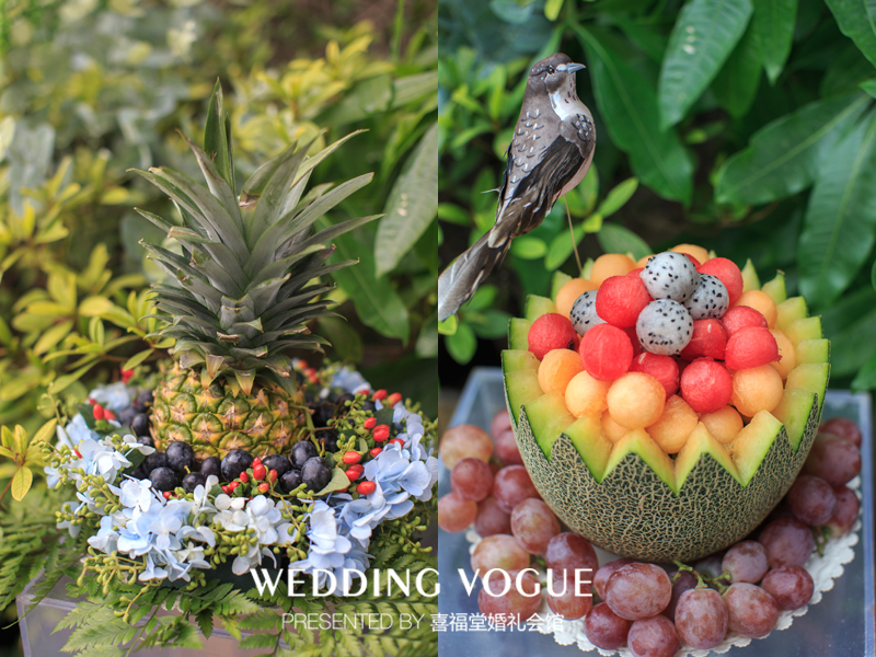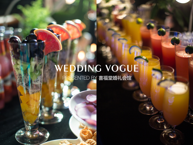 一步入活动现场便会被五彩多姿的水果和花束吸引眼球。心灵手巧的喜福堂人为准备此次庆典Party,提前几日便开始亲手调制活动饮料,并学习摆放水果拼盘。当日现场内所有供来宾畅饮享用的美饮美食,和赠送的签到小礼物,全部都由喜福堂员工亲手制作。这样贴心的服务安排,不仅蕴含着喜福堂人内心对于合作伙伴、挚友同伴的无限谢意,更代表着喜福堂婚礼策划会馆始终如一的细致用心。