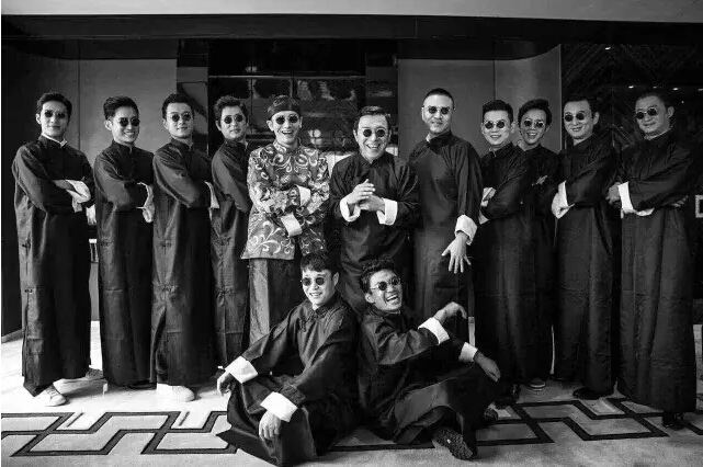 戴着算命先生墨镜,穿着老上海风格的服装,有木有《上海滩》里的感觉?强哥,你是来抢亲的吗?