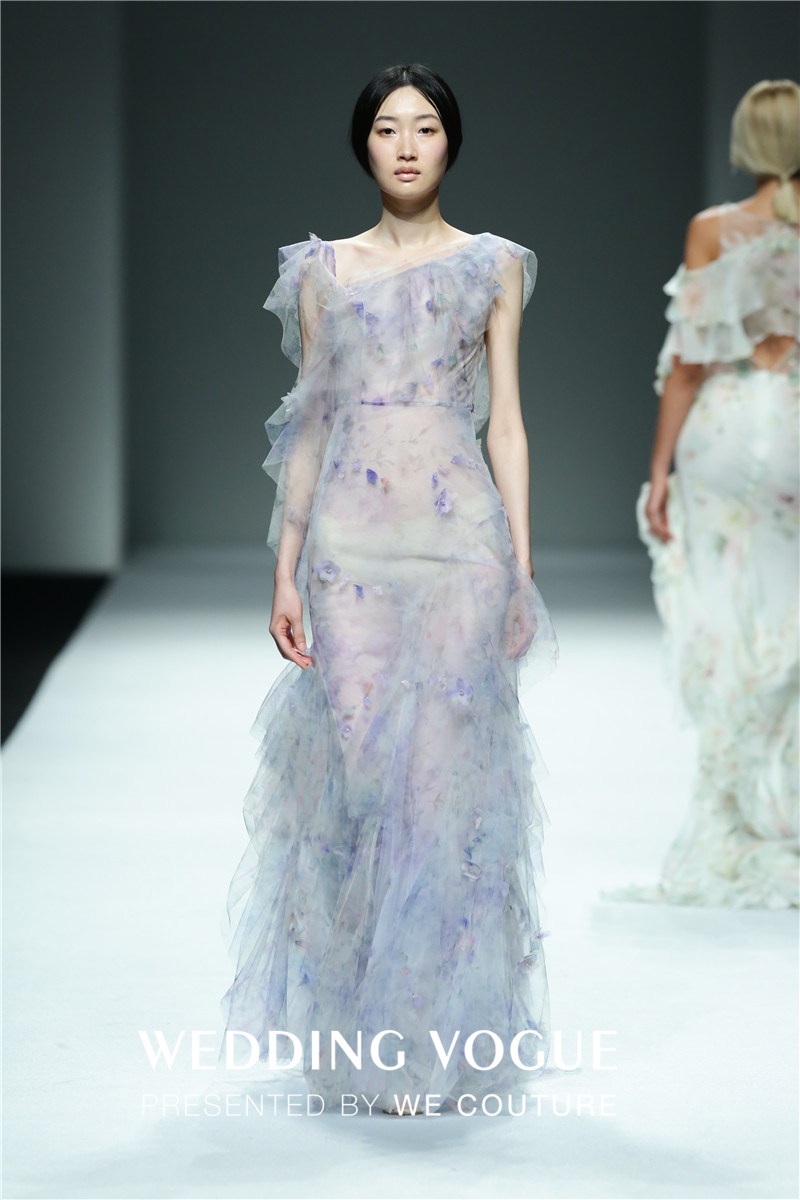 在这一季中,充满空气感的立体薄纱裙依然存在,不论是不对称裙摆上立体装饰雪纺礼服还是精细的立体花朵装饰,看起来依旧仙气十足。
