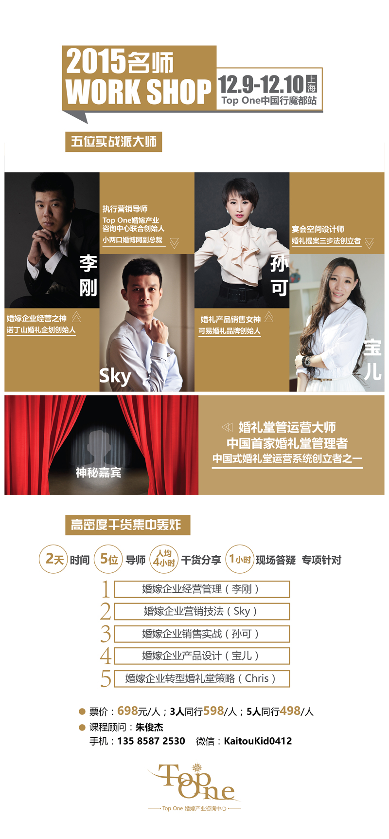 2015名师Work Shop年终巨献 Top One中国行 魔都站 开始报名啦!