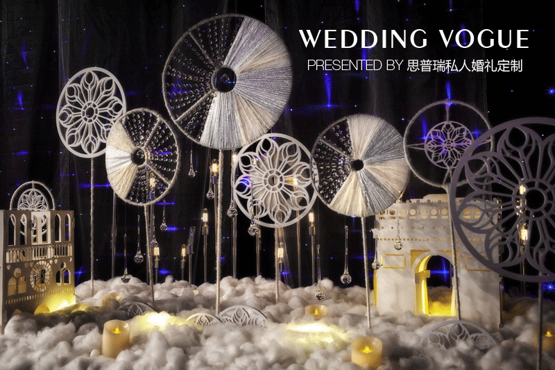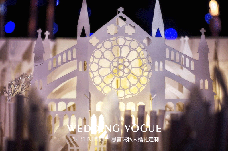不同于以往,此次婚礼秀首开国内先河,将衍纸光影艺术运用到婚礼当中。所谓衍纸是指通过卷曲、弯曲、捏压而形成设计形象的一门独特折纸艺术,一度流传于英国贵族之间。将衍纸艺术结合曼妙光影,复杂而不失唯美,将一份高贵典雅体现得淋漓尽致。