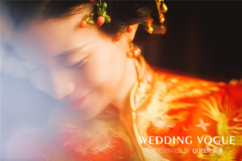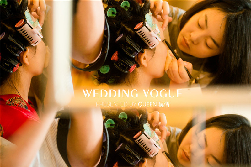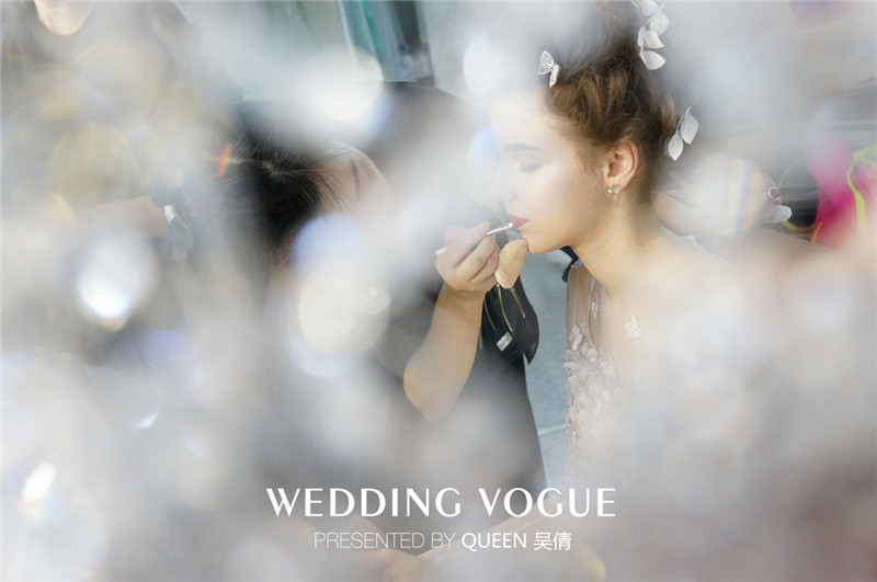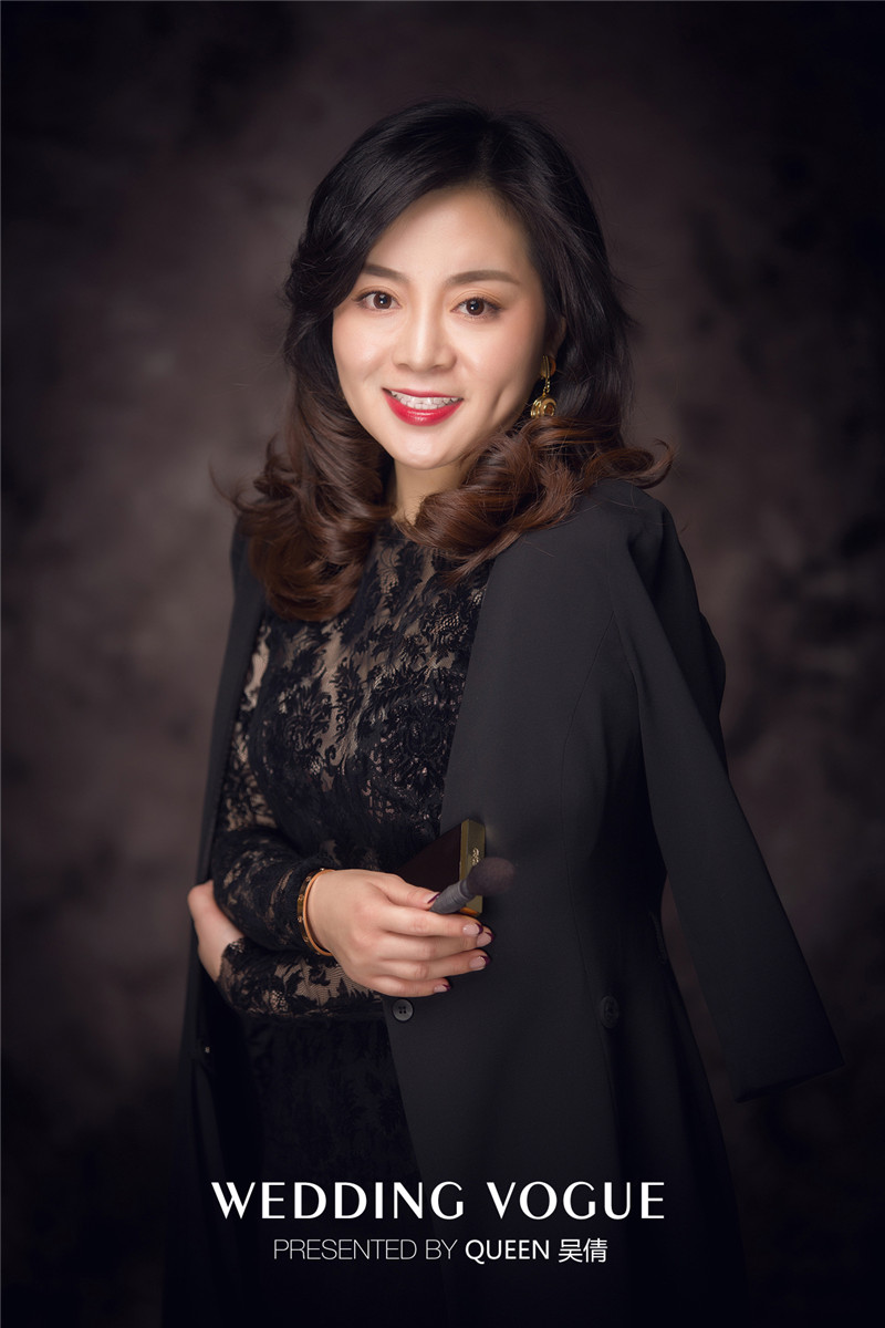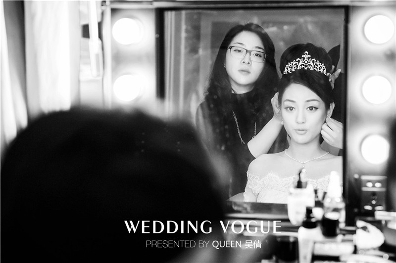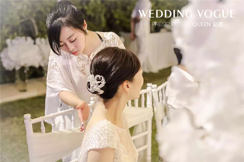 因人而异,定制妆容。看她妆容下的新娘,会发现每一位都有自己独特的美。她说:“每个人适合的东西都不一样,先要认识这个人才能画出属于她的灵气。妆容不仅要让新娘美,更要凸显她的气质。服饰与妆容的美也要合二为一才行。”她不愿把新娘的五官以韩式、欧美等流行风格定论,多年的职业经验告诉她,只有挖掘每位新娘不同的气质,才能画出属于新娘独一无二的美。她从不教导学生按照特定的风格给客人化妆,不会勉强和硬性规定妆容风格,并非故意特立独行,而是有自己的想法与认识。于她来说,每一位新娘的美是不同的,化妆也需要因人而异。每一个学生的潜质与长处也不同,需要因材施教。给客人化妆时她一定要化到自己满意为止,如同追求艺术一般,她享受这样的过程。在一场婚礼中,要兼顾婚礼团队的整体配合,化妆师的工作时间非常有限。因为专注,Queen会时常忘记时间,业内同行亲切称她“吴阿姨”,对此她笑称:“希望今后能做好品质与时间之间的平衡。”她潜心研究化妆,希望在这方面有所造诣,纵然深知定制妆容的路会走的很艰辛,但她坚信这是一条长远的路。